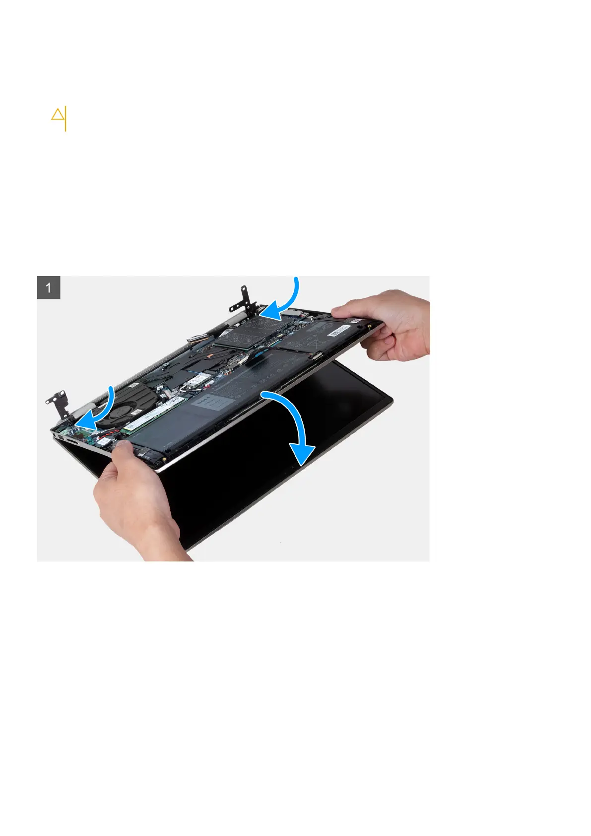 CAUTION: To avoid damaging the display, do not slide the palm-rest and keyboard assembly over the display