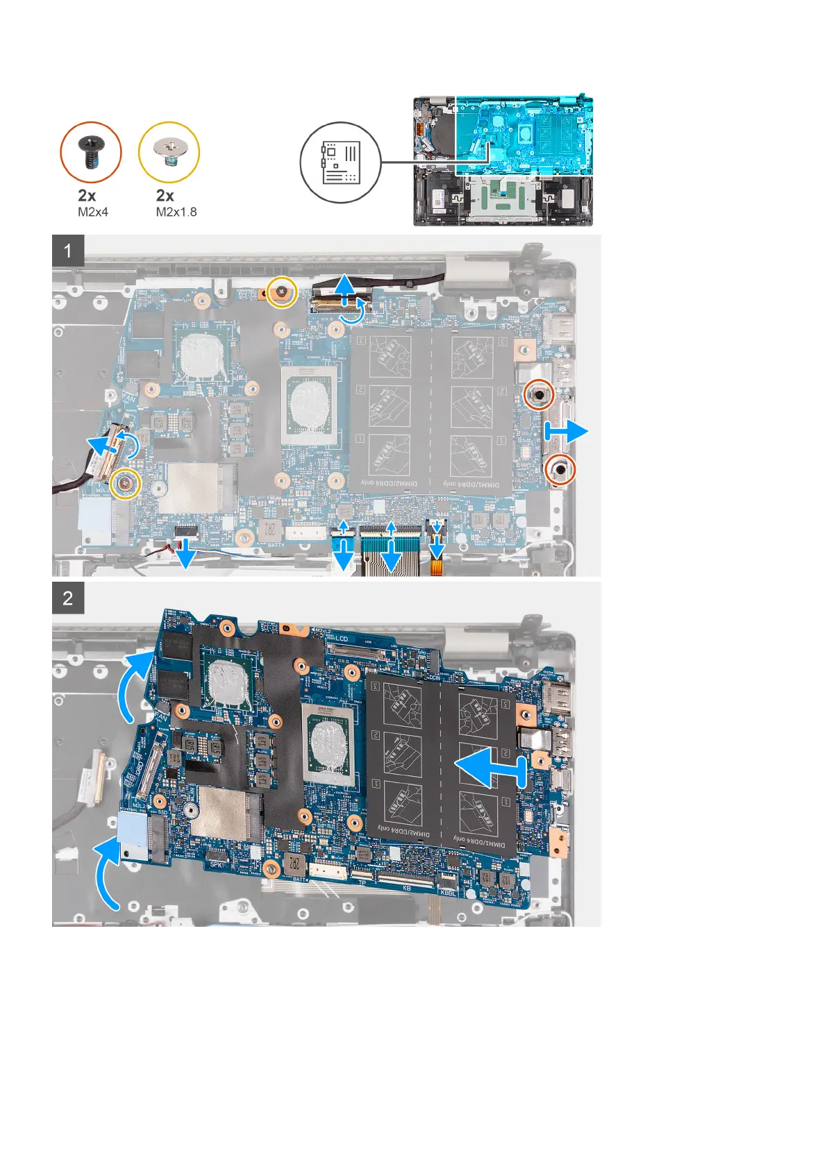 3. Peel off the tapes that secure the I/O-board cable and antenna cables to the palm-rest and keyboard assembly.
