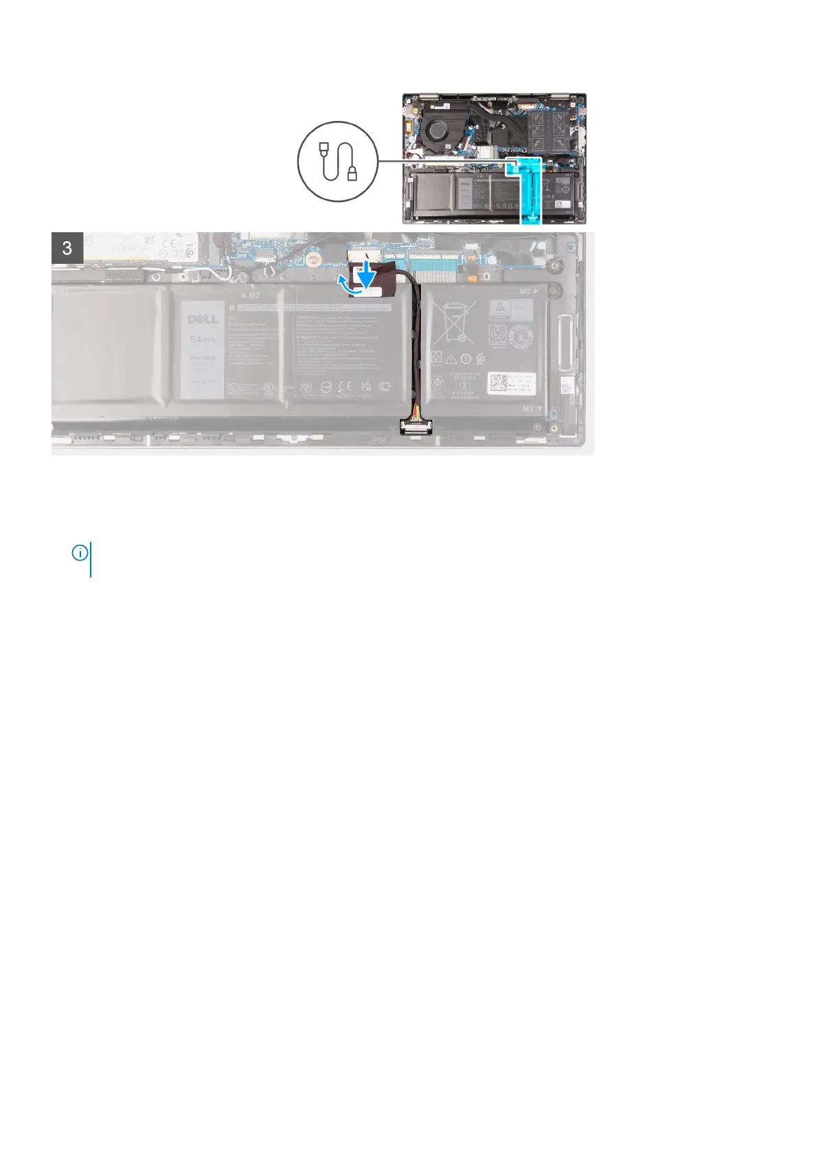 4. Peel the tape that secures the battery cable to the system board and disconnect the battery cable from the system board.