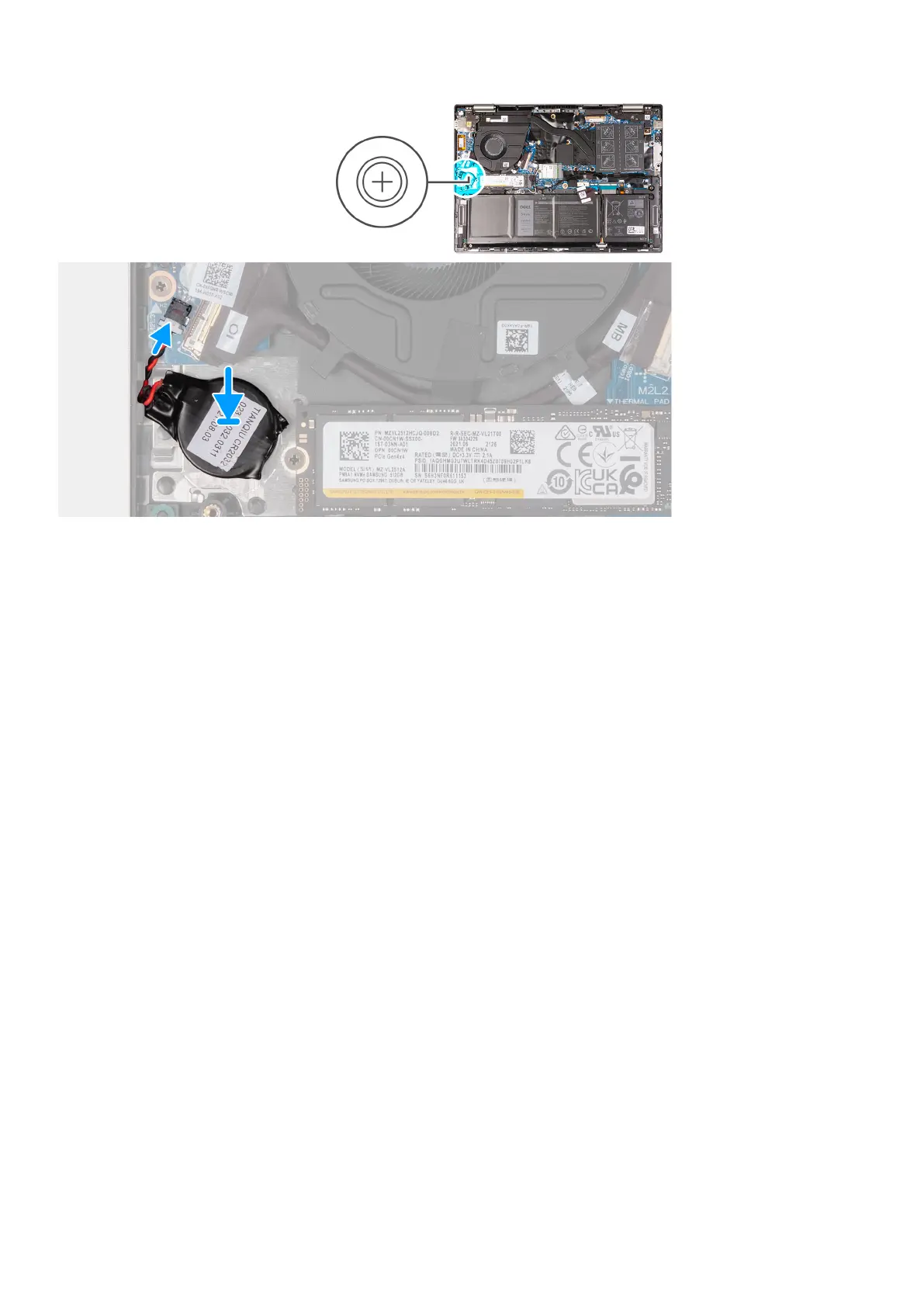 1. Adhere the coin-cell battery to the slot on the palm-rest and keyboard assembly.