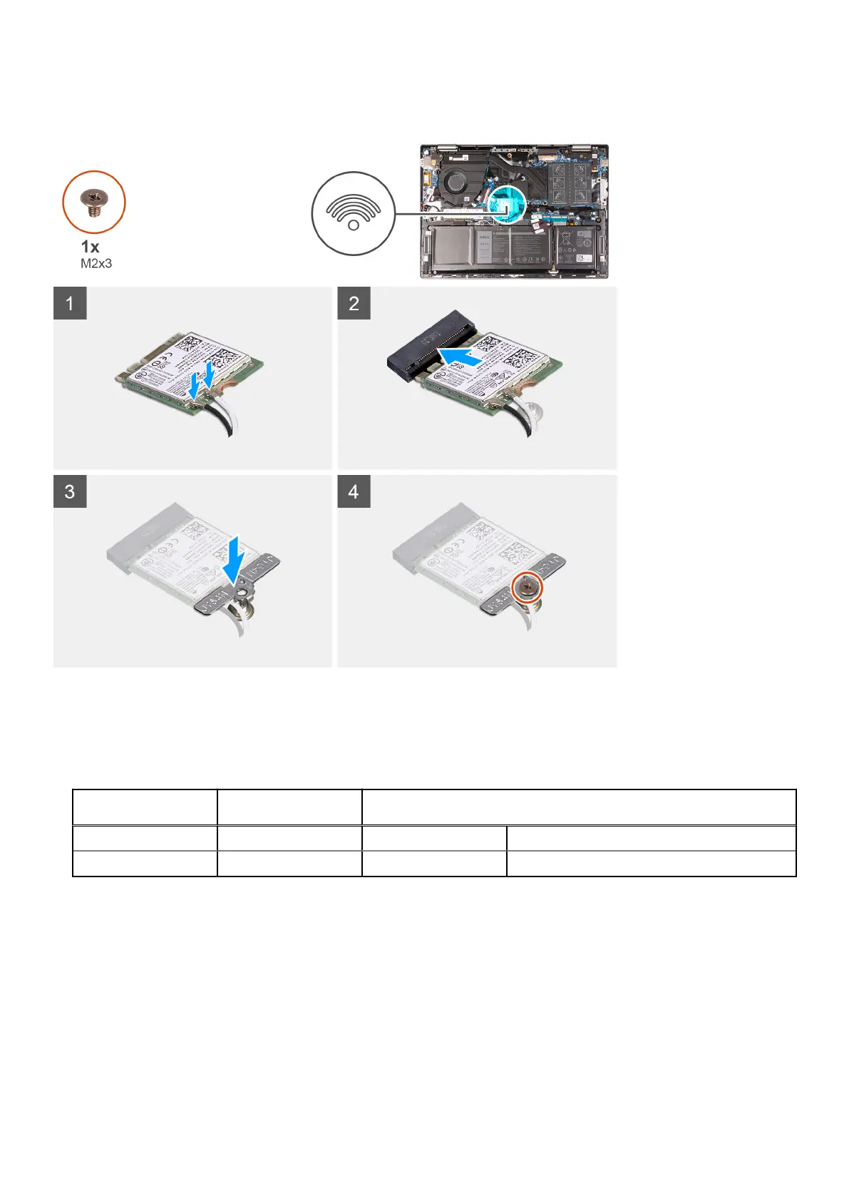 4. Replace the screw (M2x3) that secures the wireless-card bracket to the wireless card and system board.