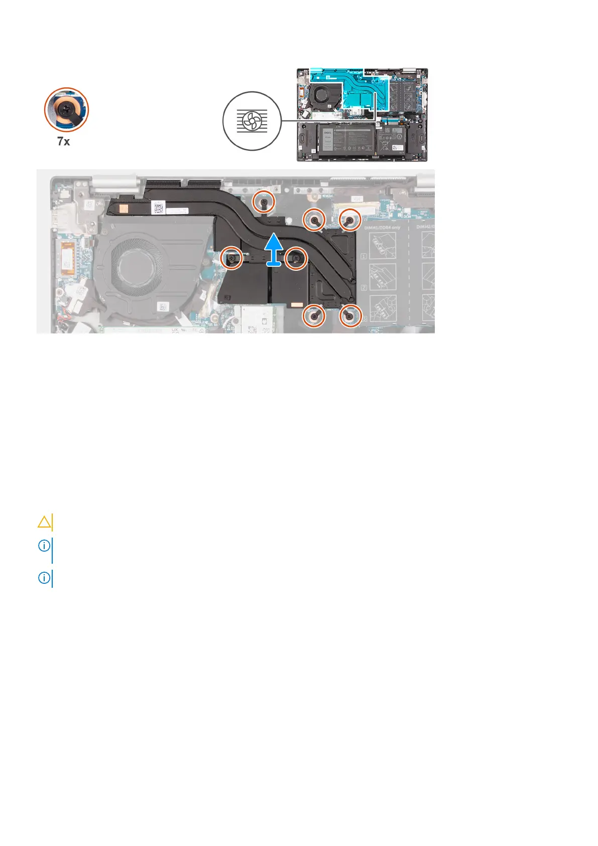 1. In reverse sequential order, loosen the seven (7>6>5>4>3>2>1) captive screws that secure the heat sink to the system