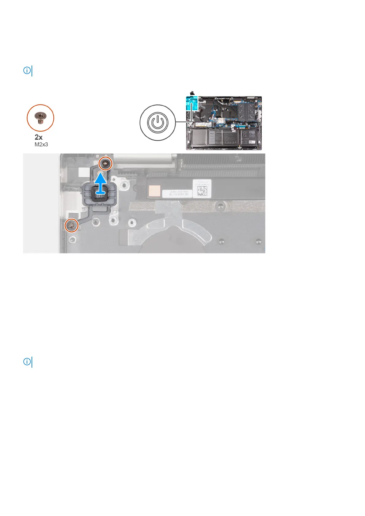 1. Remove the two screws (M2x3) that secure the power-button to the palm-rest and keyboard assembly.