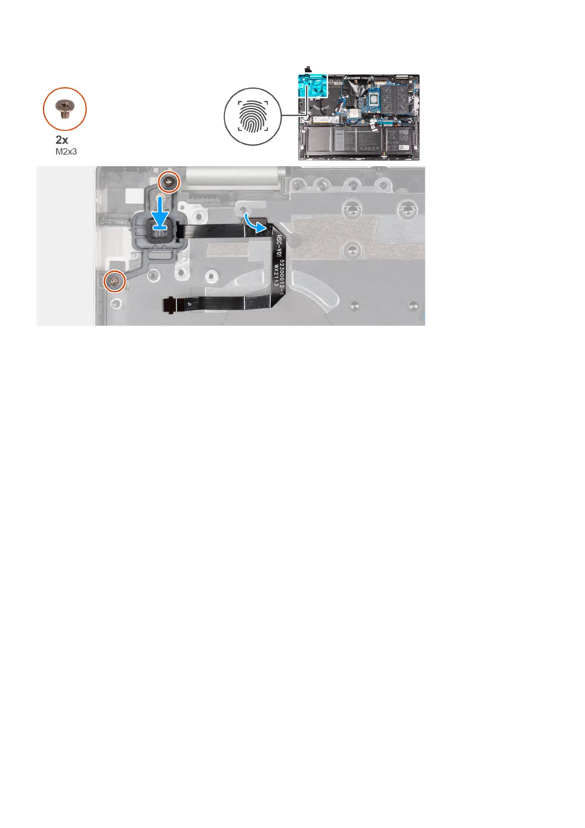 3. Replace the two screws (M2x3) that secure power-button to the palm-rest and keyboard assembly.