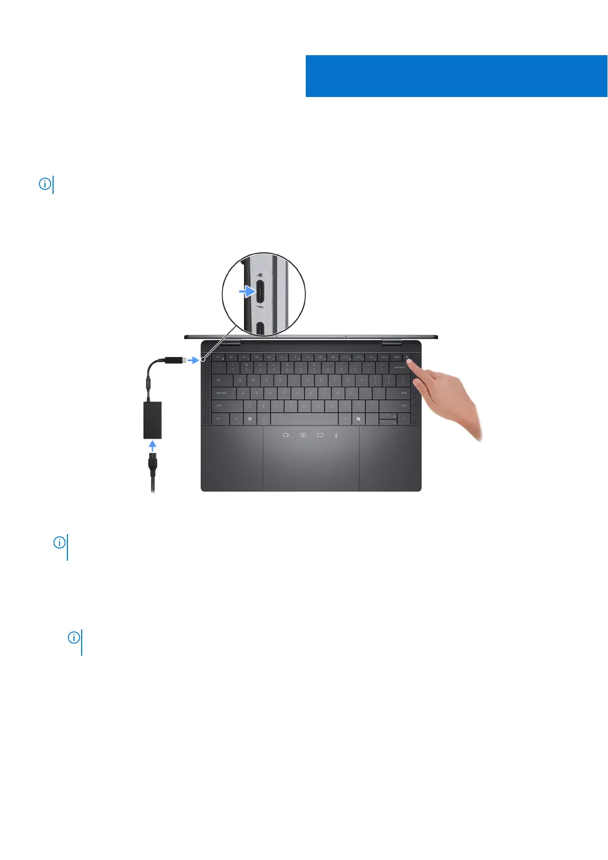 1. Connect the power adapter and press the power button.