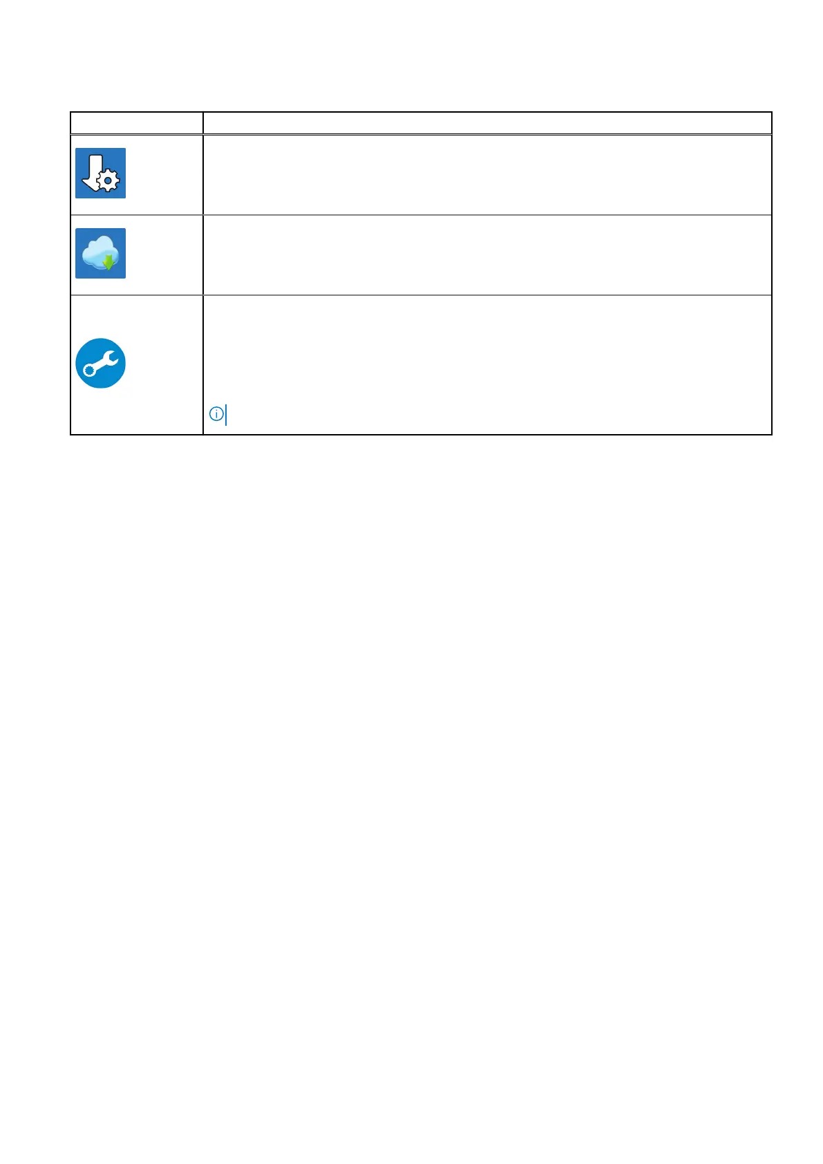 Table 2. Locate Dell apps in Windows