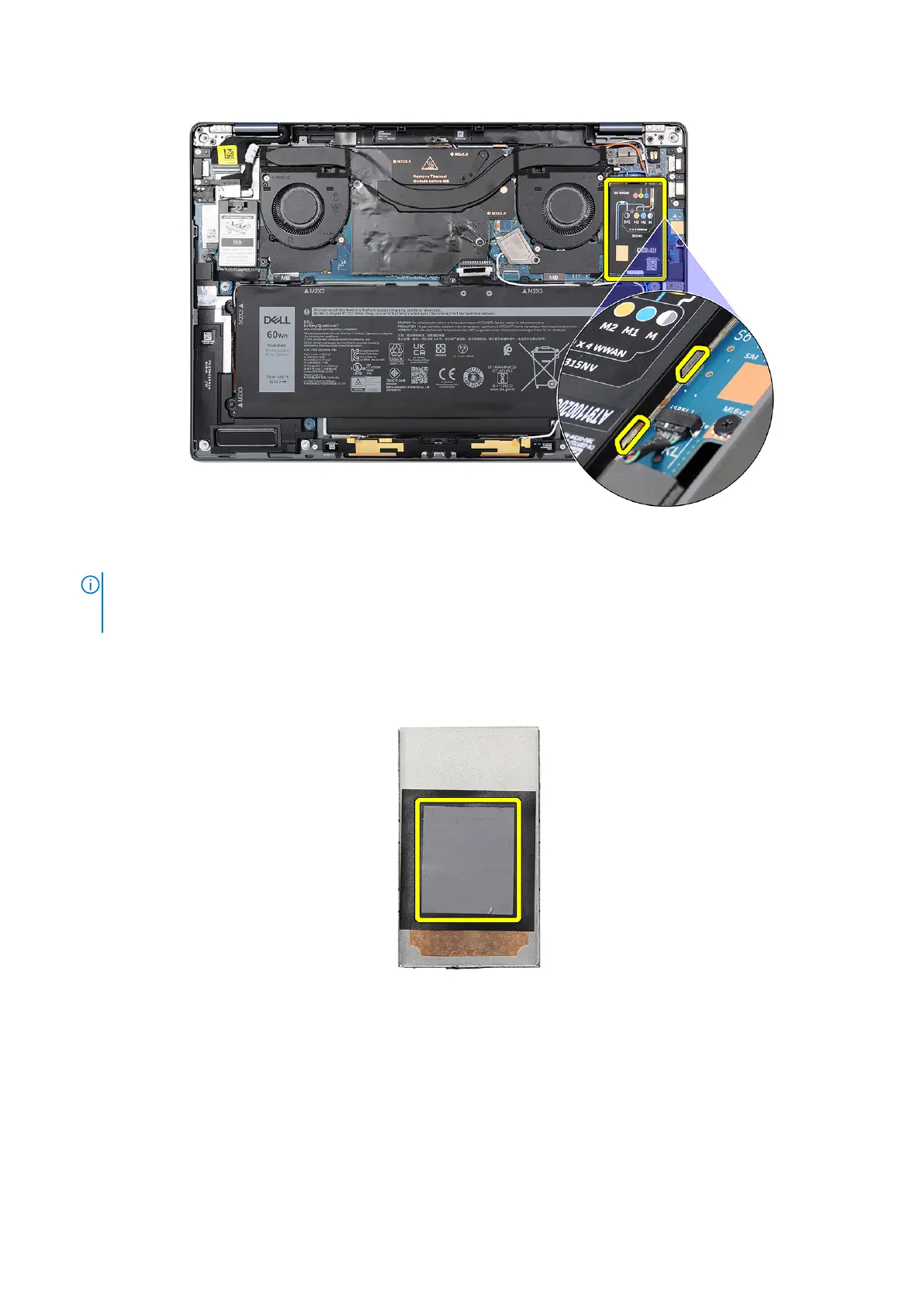 A thermal pad is included with the WWAN card shielding cover which must always be adhered to the cover. If