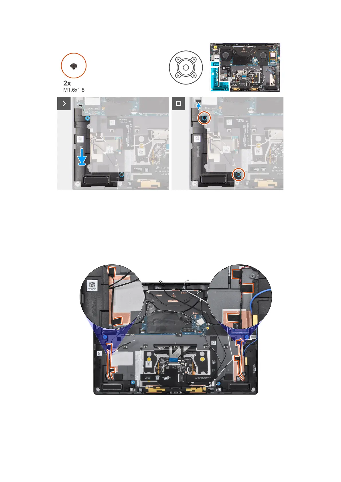 2. Replace the two (M1.6x1.8) screws to secure the right-speaker to the system.