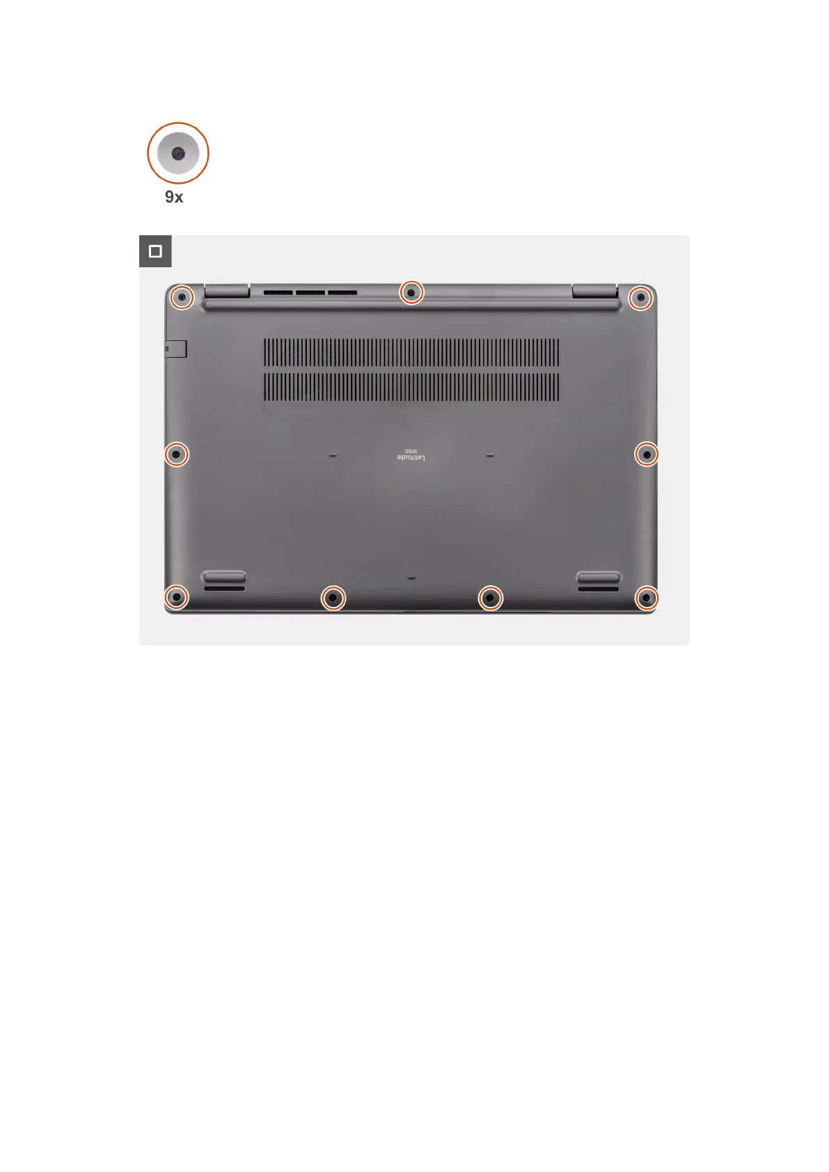 3. Tighten the nine captive screws to secure the base cover to the chassis.