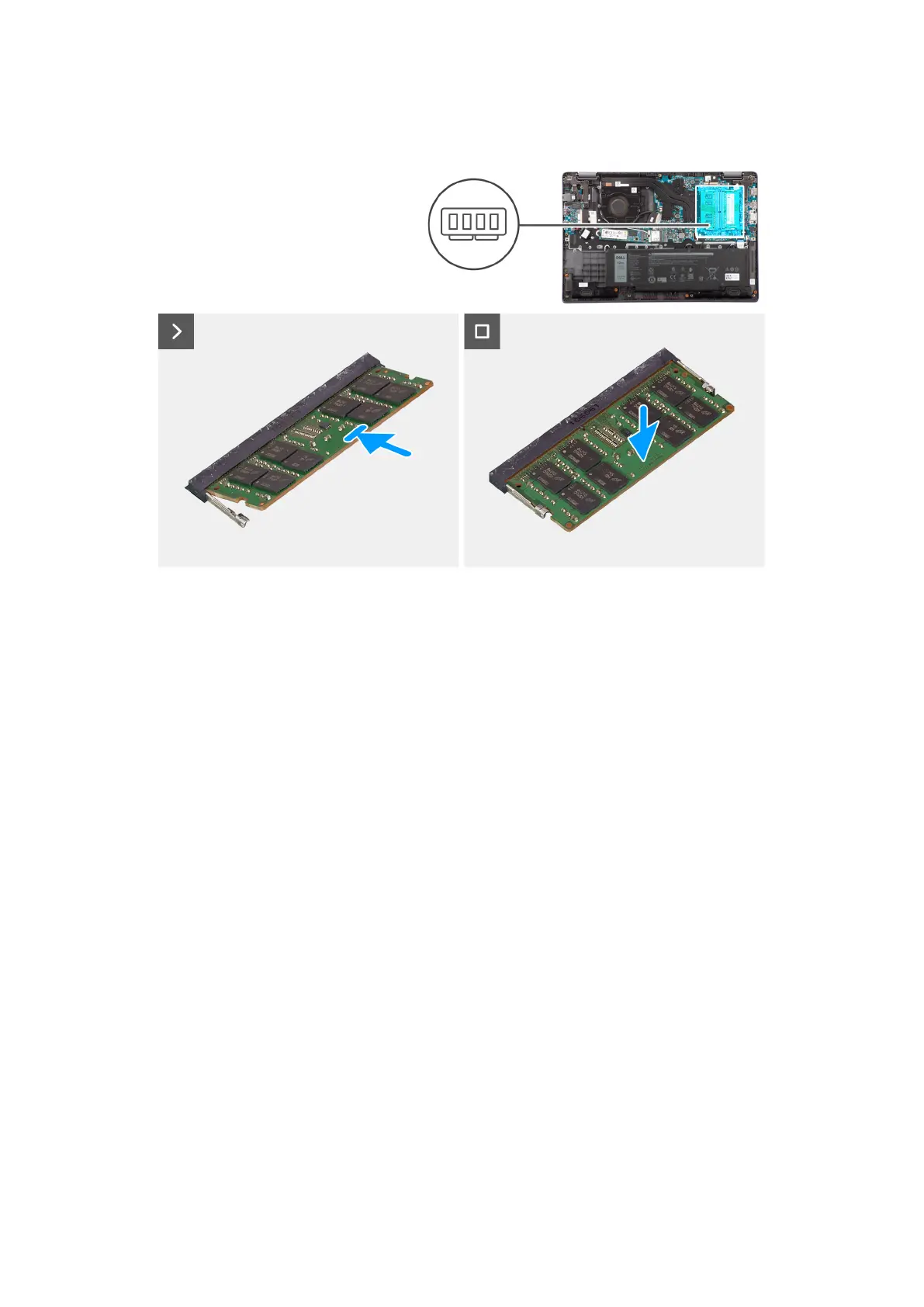 The figure indicates the location of the memory module and provides a visual representation of the installation procedure.