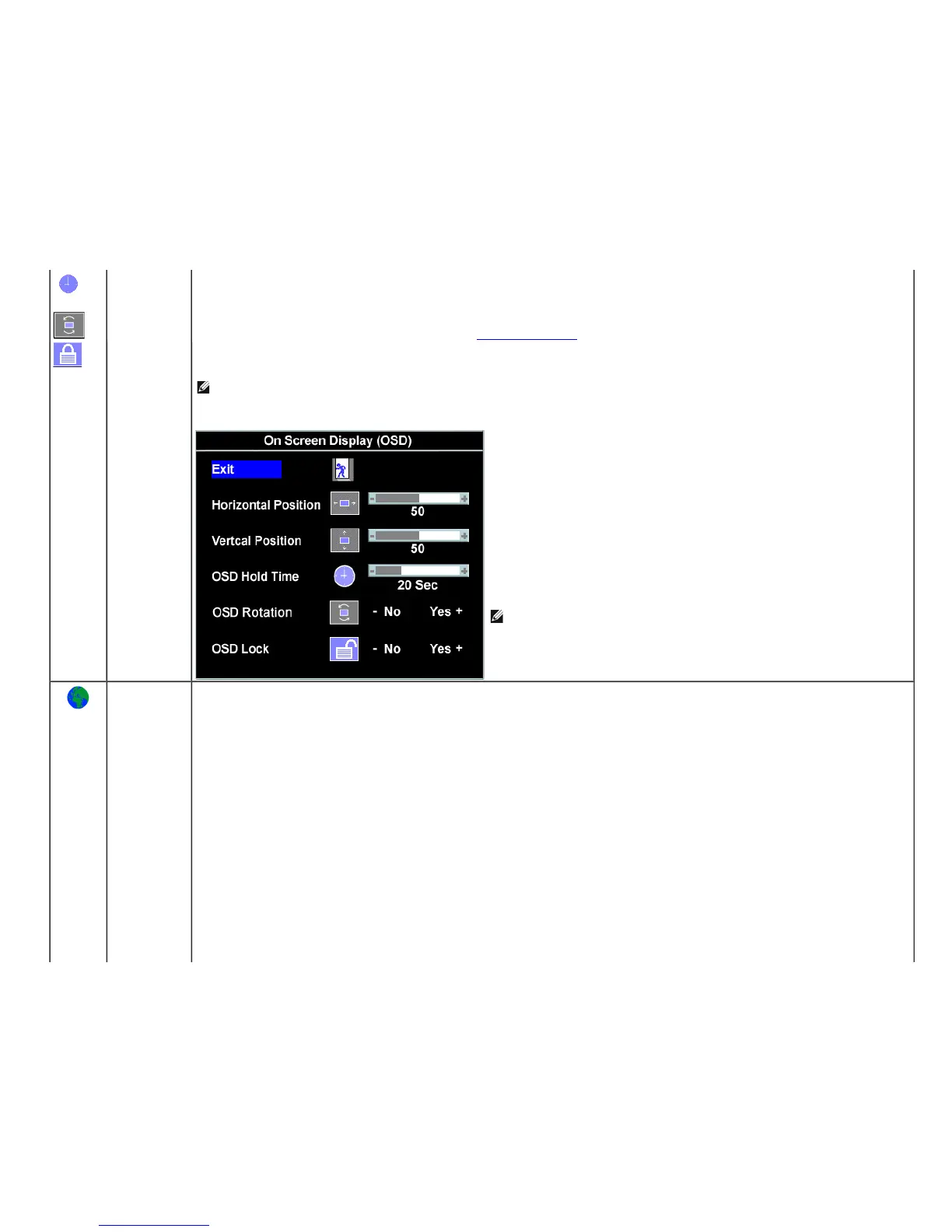 Rotates the OSD by 90 ° counter-clockwise. Adjust according to Rotating Your Monitor