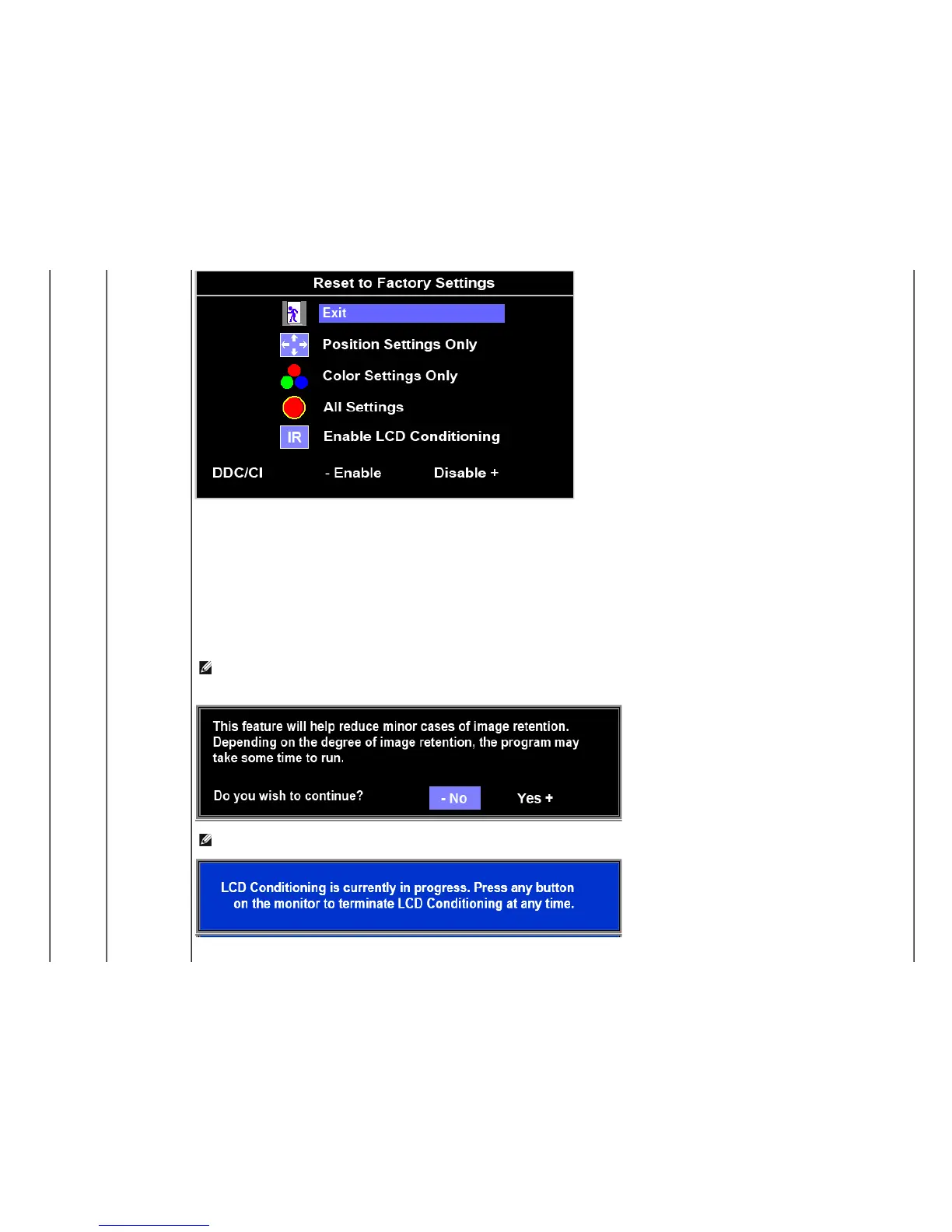 NOTE: Use LCD Conditioning only when you experience a problem with image retention.