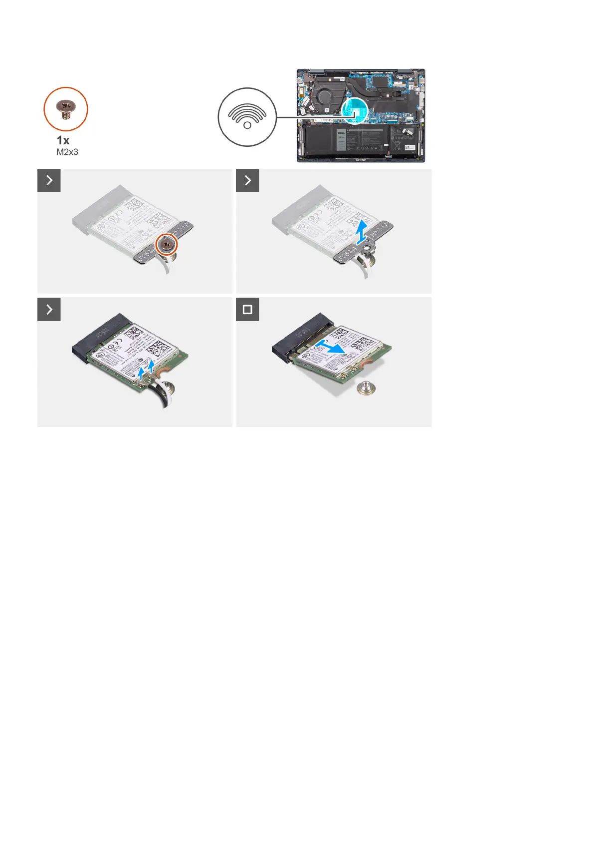 1. Remove the screw (M2x3) that secures the wireless-card bracket to the wireless card and system board.