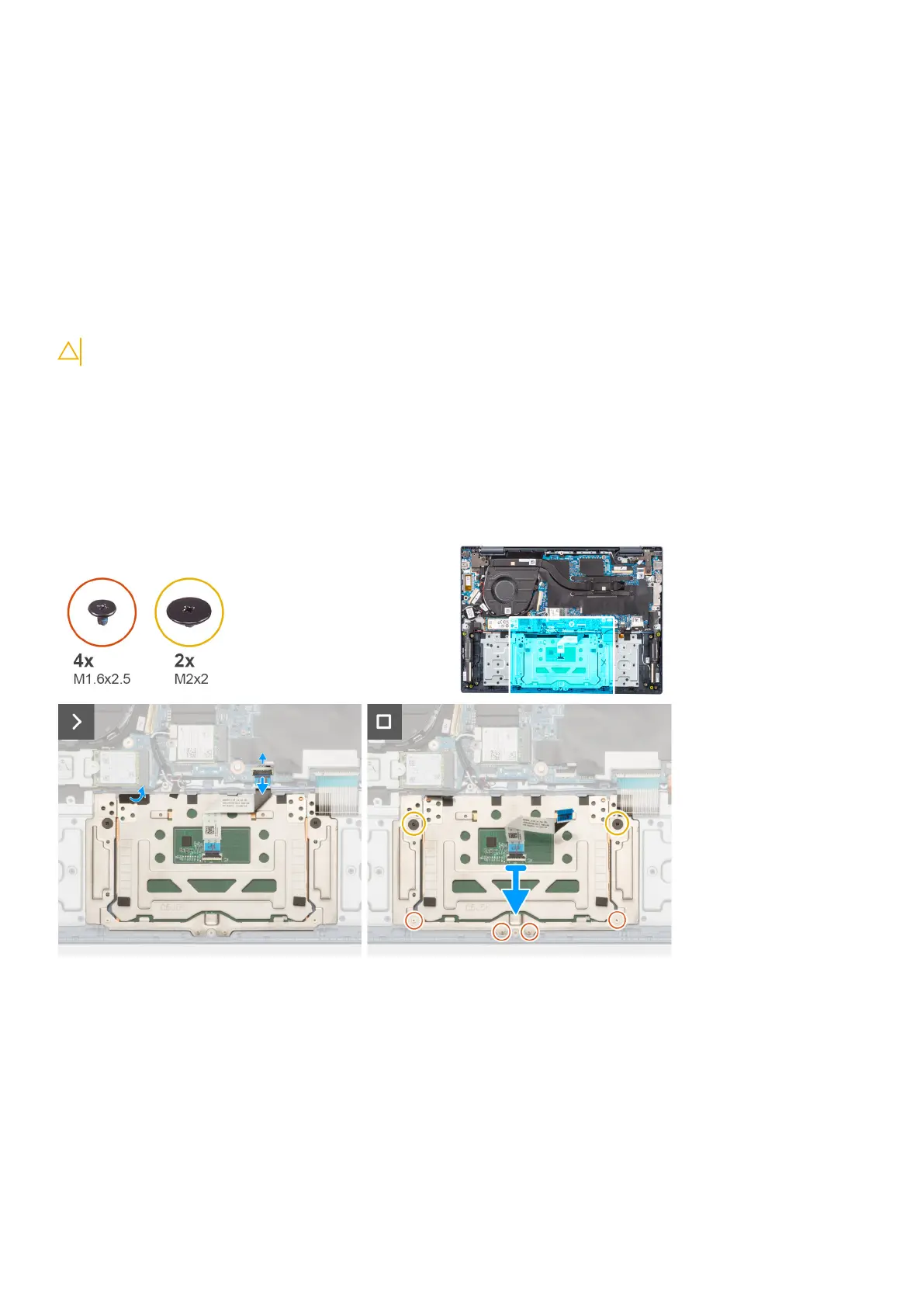 3. Remove the two screws (M2x2) and the four screws (M1.6x2.5) that secure the touchpad to the palm-rest and keyboard