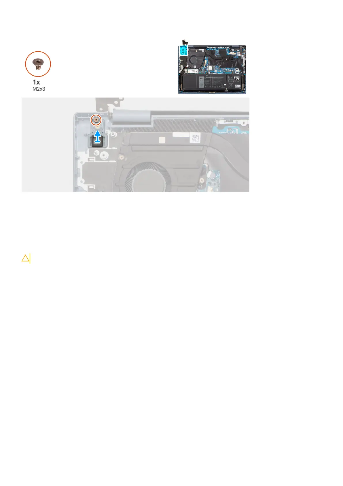 1. Remove the screw (M2x3) that secures the power button to the palm-rest and keyboard assembly.