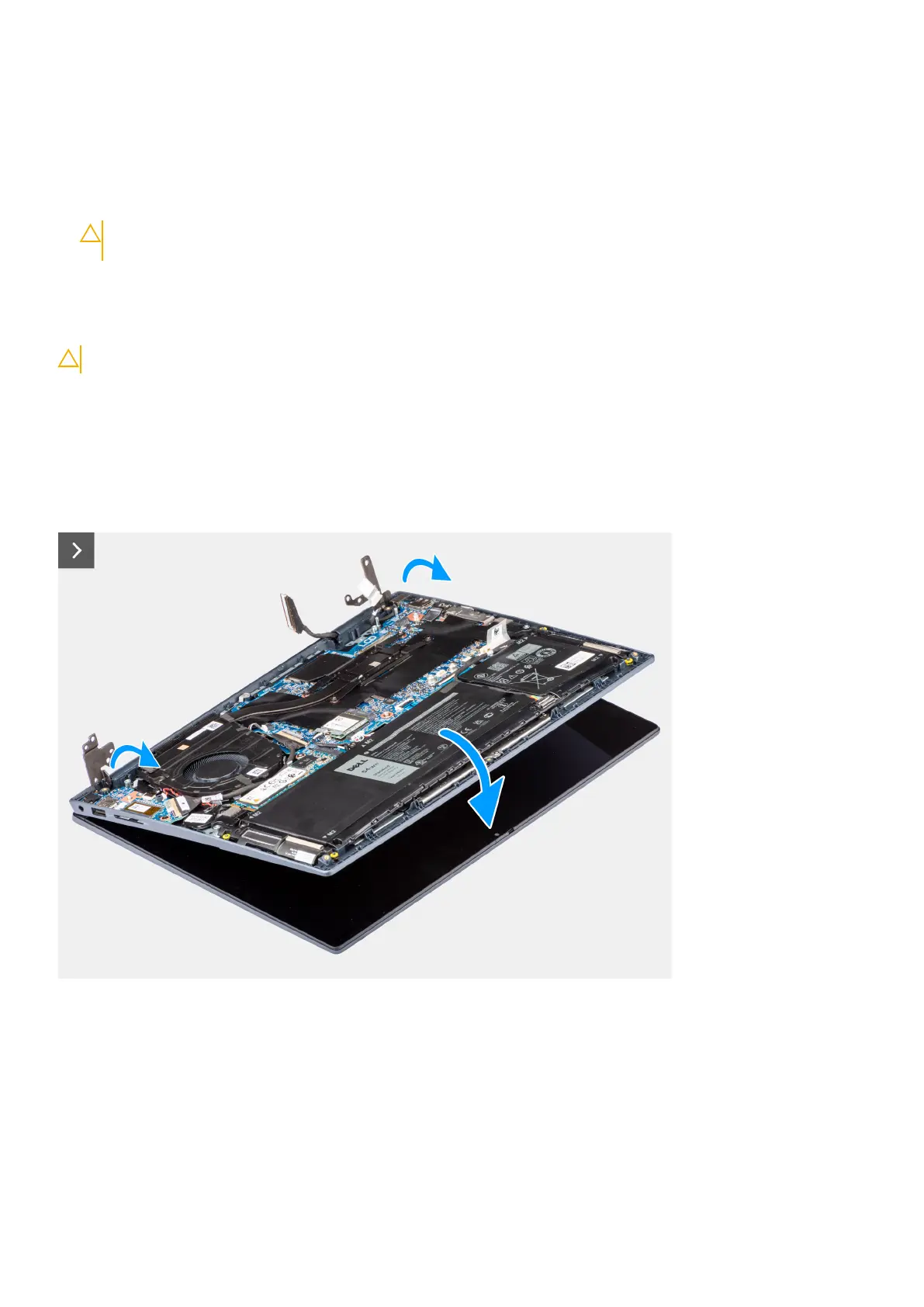 CAUTION: To avoid damaging the display, do not slide the palm-rest and keyboard assembly over the display