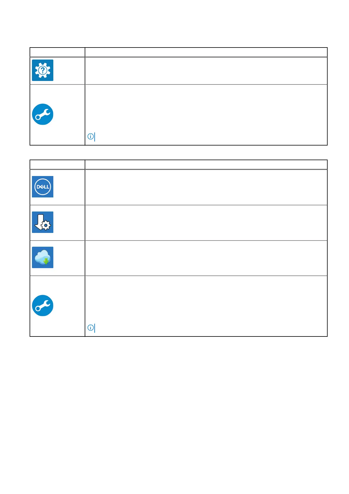 Table 2. Locate Dell apps in Windows