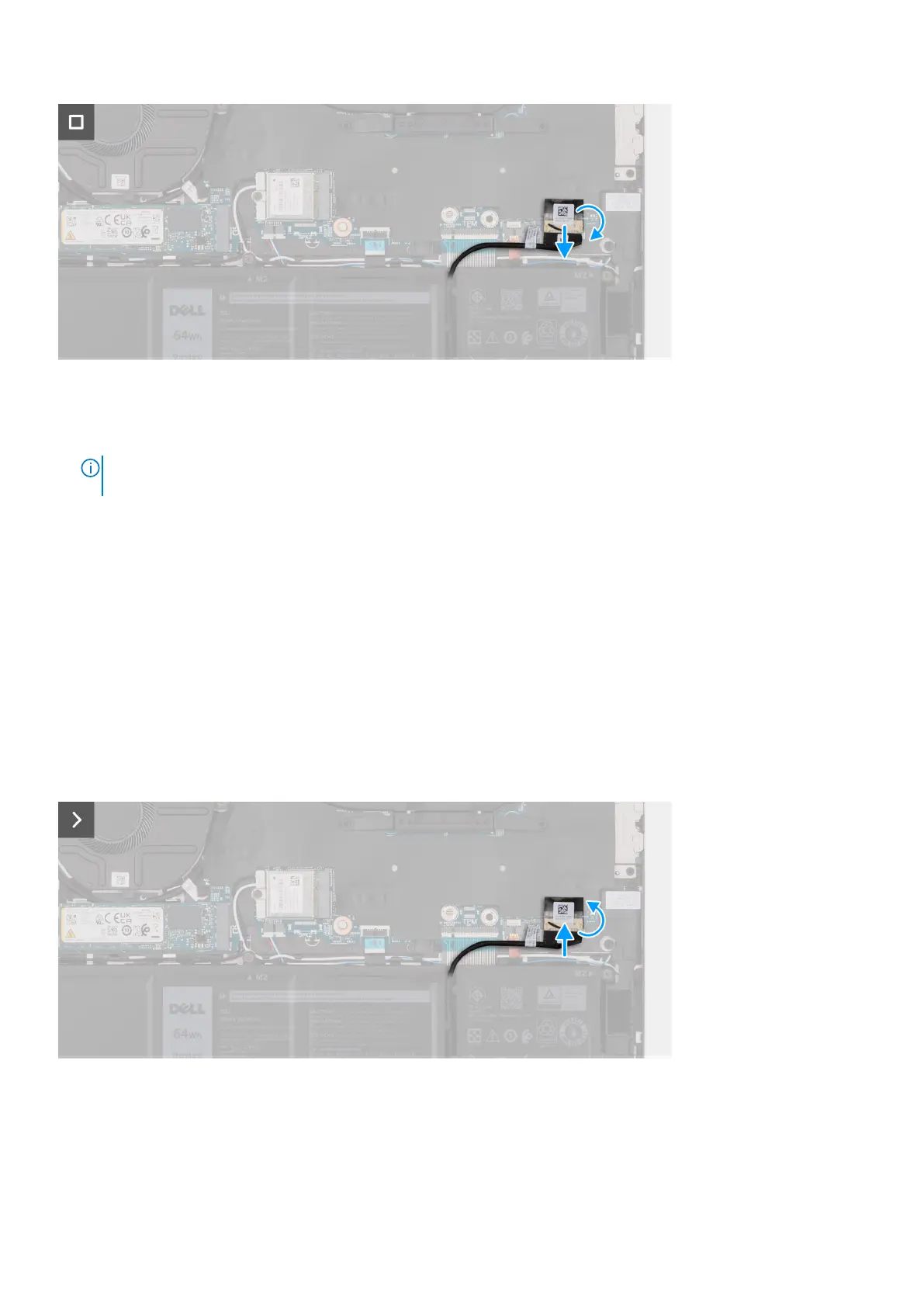 5. Peel the tape that secures the battery cable to the system board and disconnect the battery cable from the connector on