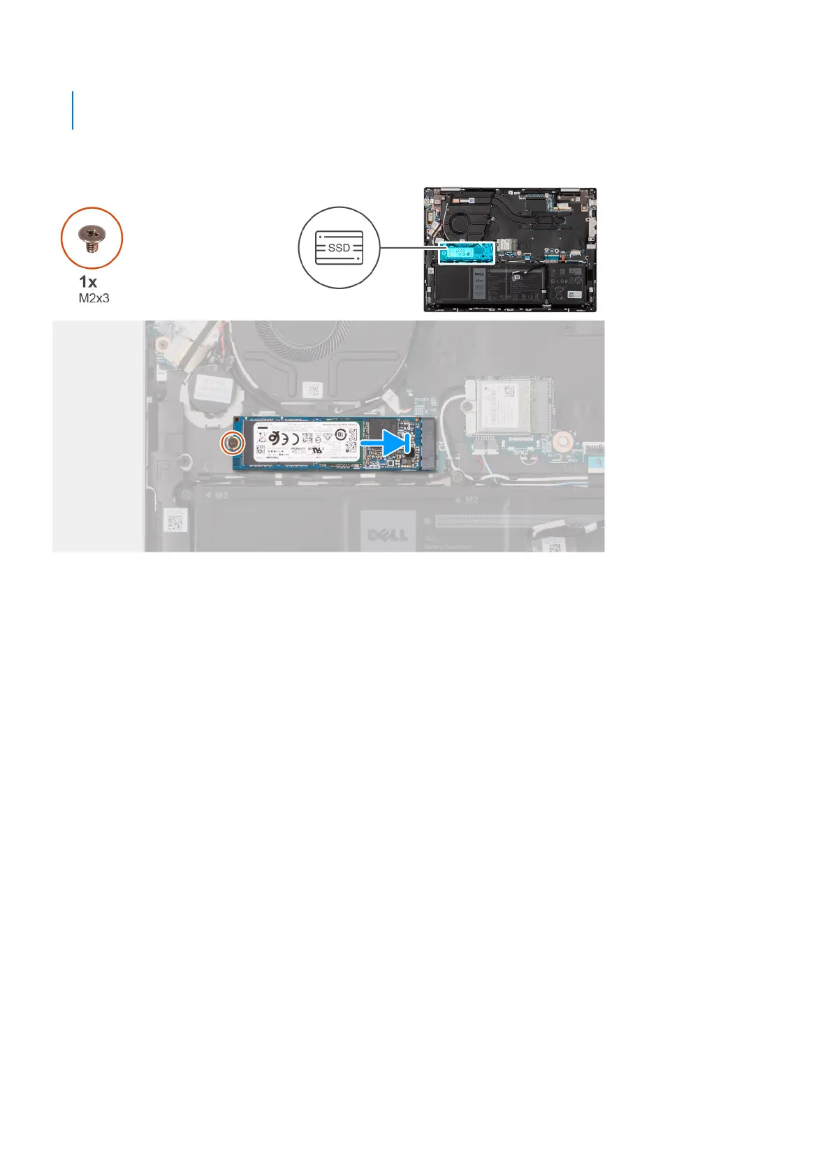 3. Replace the screw (M2x3) that secures the M.2 2280 solid-state drive to the system board.
