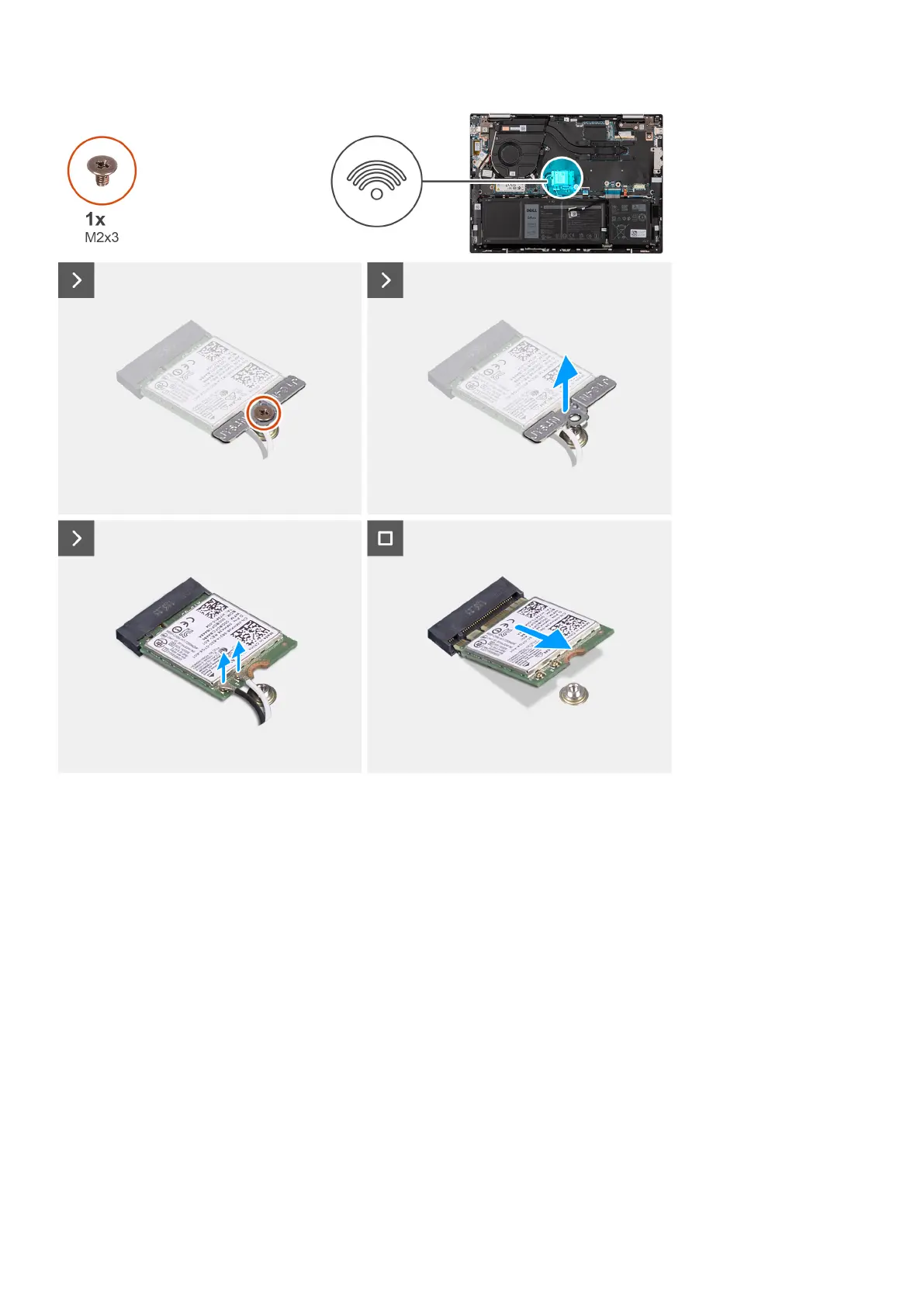 1. Remove the screw (M2x3) that secures the wireless-card bracket to the wireless card and system board.