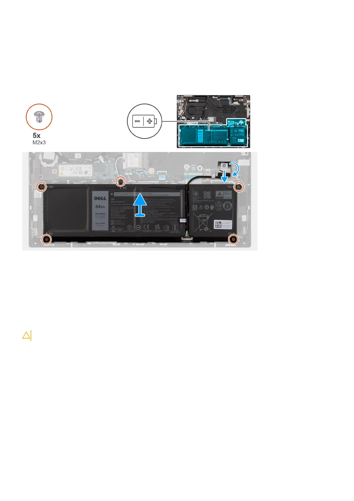 3. Remove the five screws (M2x3) that secure the battery to the palm-rest and keyboard assembly.