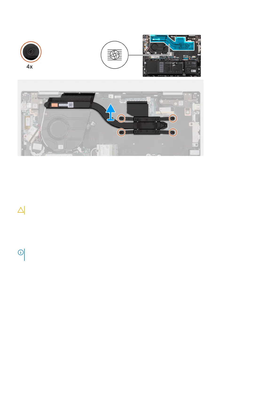 1. In reverse sequential order (4 > 3 > 2 > 1), loosen the four captive screws that secure the heat sink to the system board.