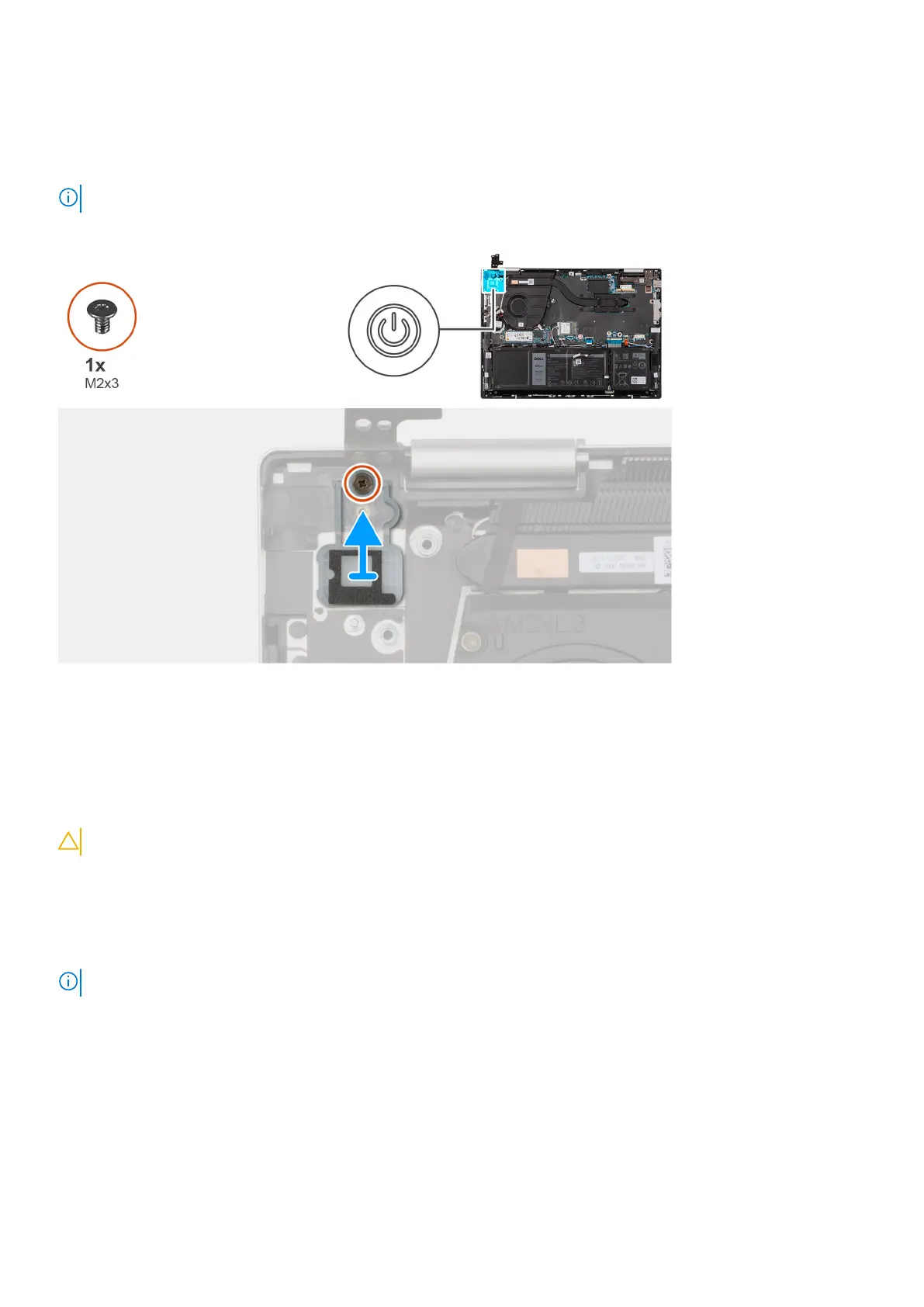 1. Remove the screw (M2x3) that secures the power-button to the palm-rest and keyboard assembly.
