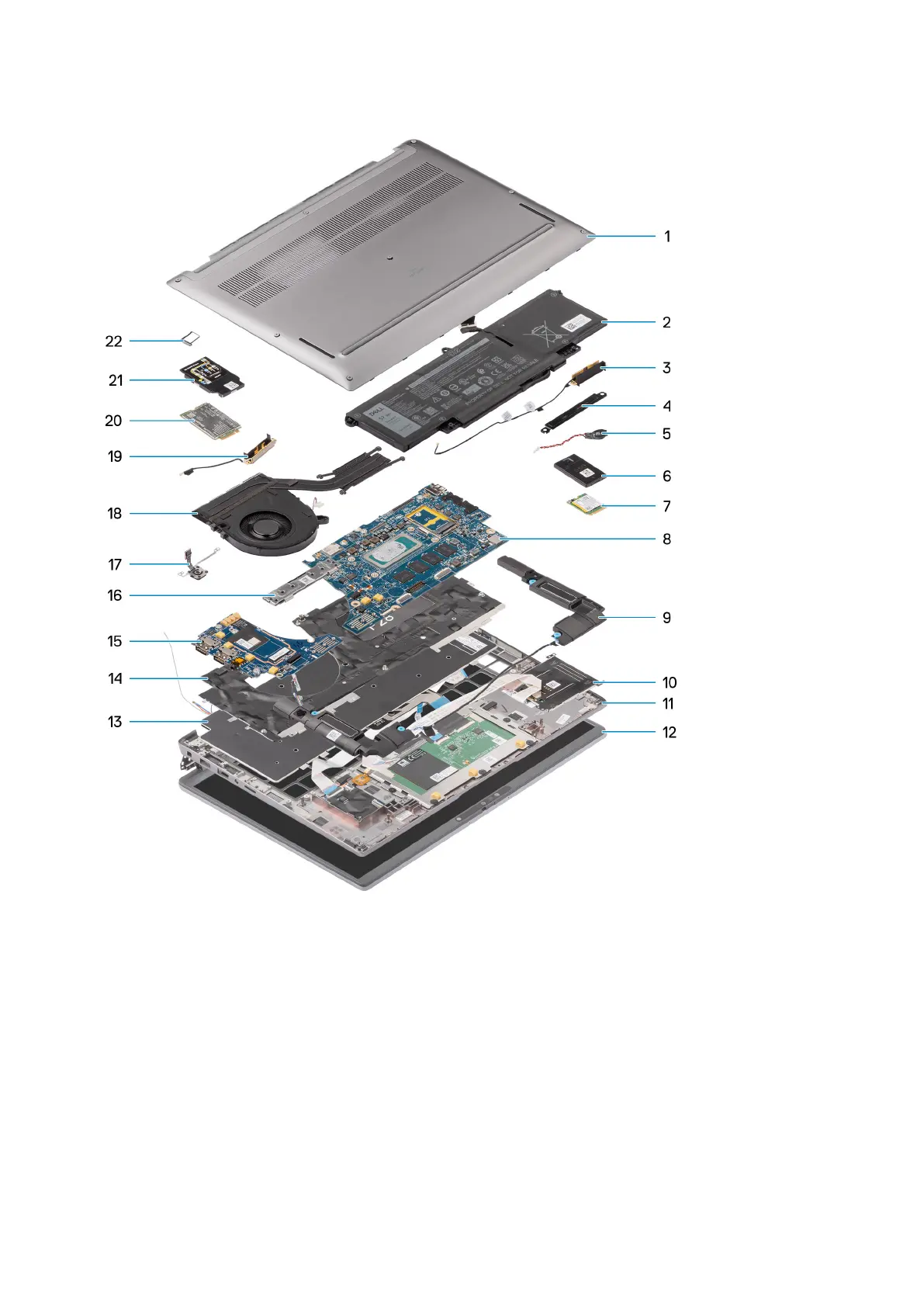 21. WWAN card 22. SIM card tray