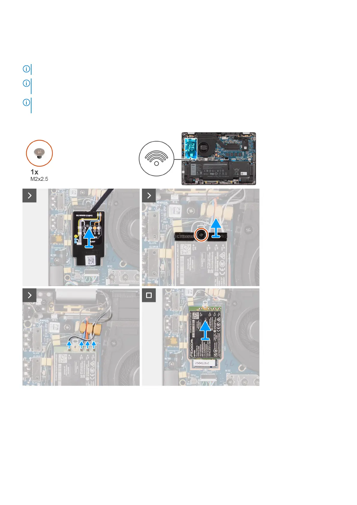 The following images indicate the location of the 5G WWAN card and provide a visual representation of the removal procedure.