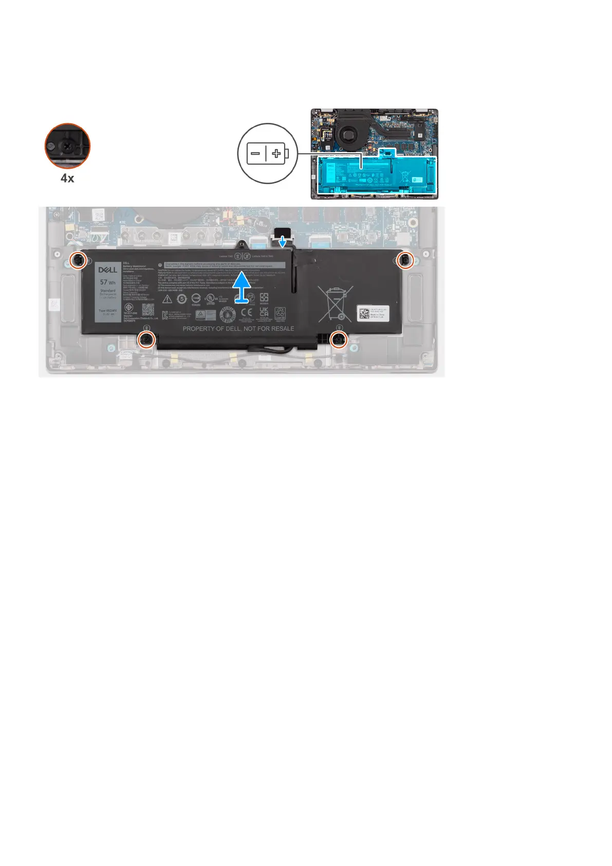 The following image indicates the location of the 3-cell battery and provides a visual representation of the removal procedure.