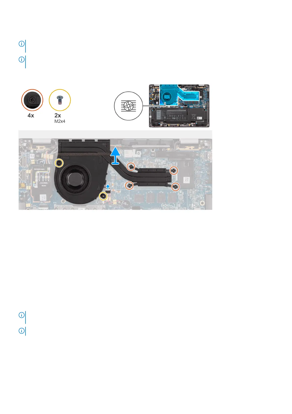2. Remove the four screws (M2x4) that secure the thermal fan to the system board.