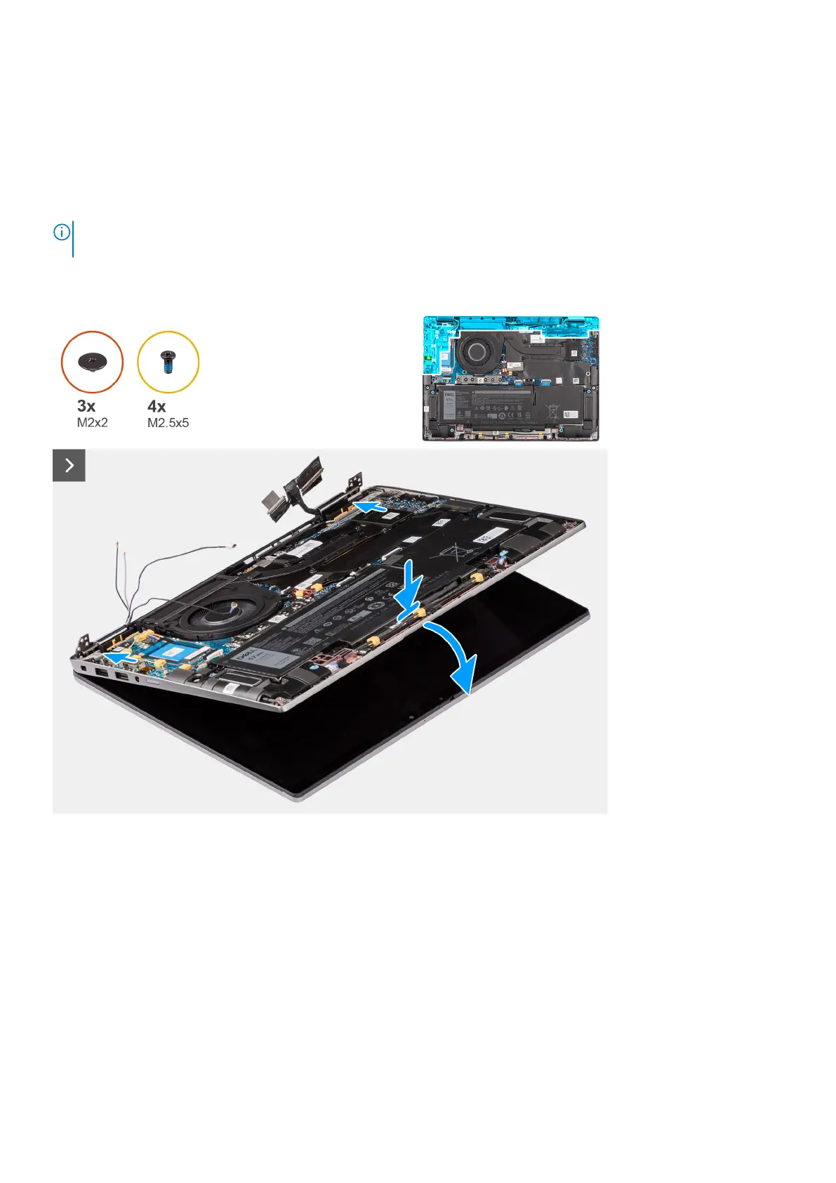 NOTE: Ensure that the hinges are opened to the maximum before replacing the display assembly on the palm-rest and