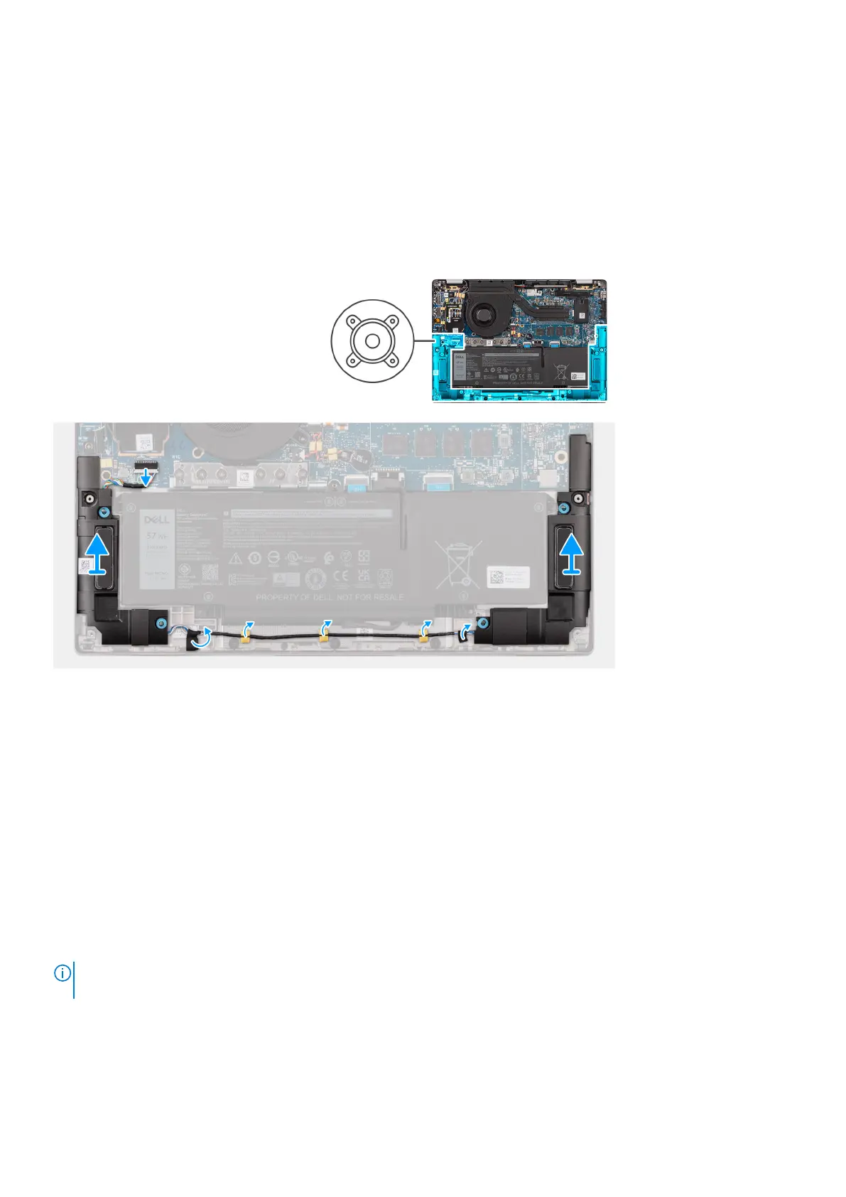 The following image indicates the location of the speakers and provides a visual representation of the removal procedure.