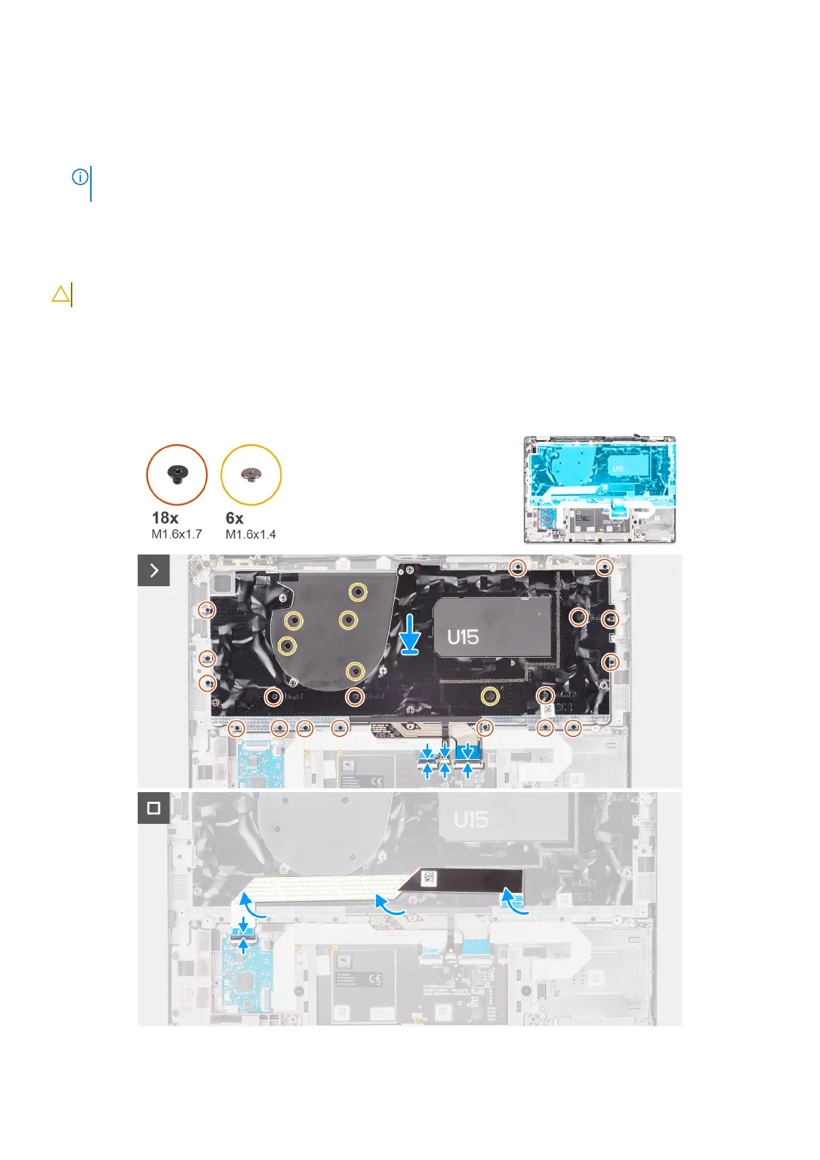 5. Remove the two screws (M1.6x1.7) that secure the keyboard to the keyboard support plate.