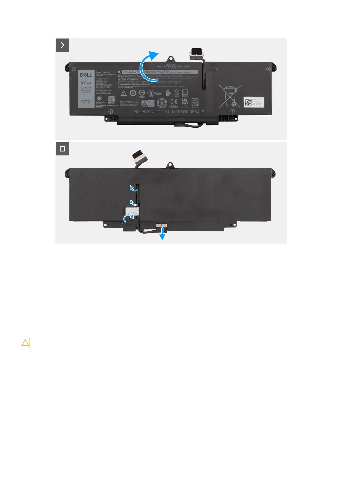 4. Flip the battery, peel the tape that secures the battery cable to the battery.