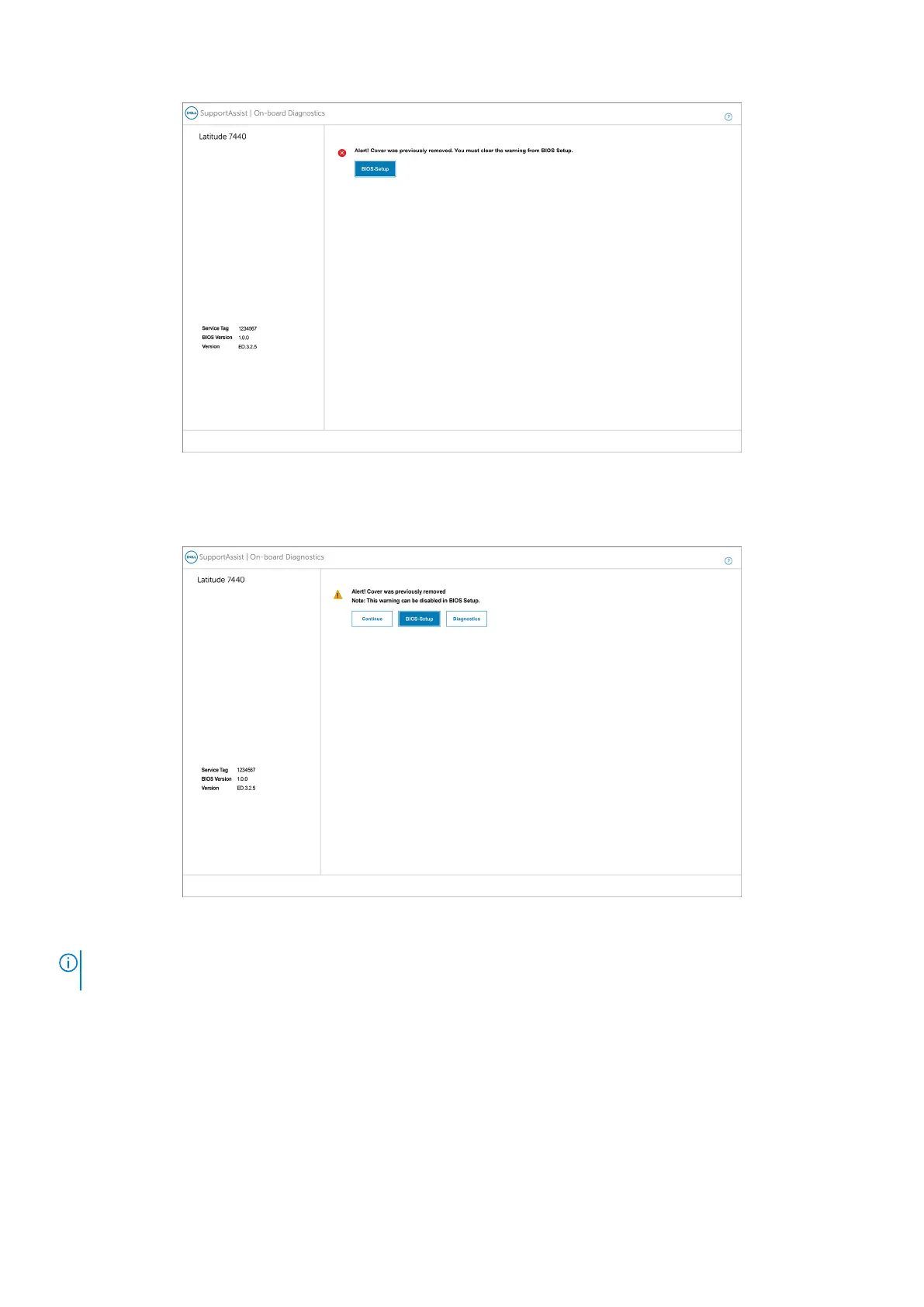 To clear the alert, select ON in the Clear Intrusion Warning field that is located within the Security sub-menu of the BIOS