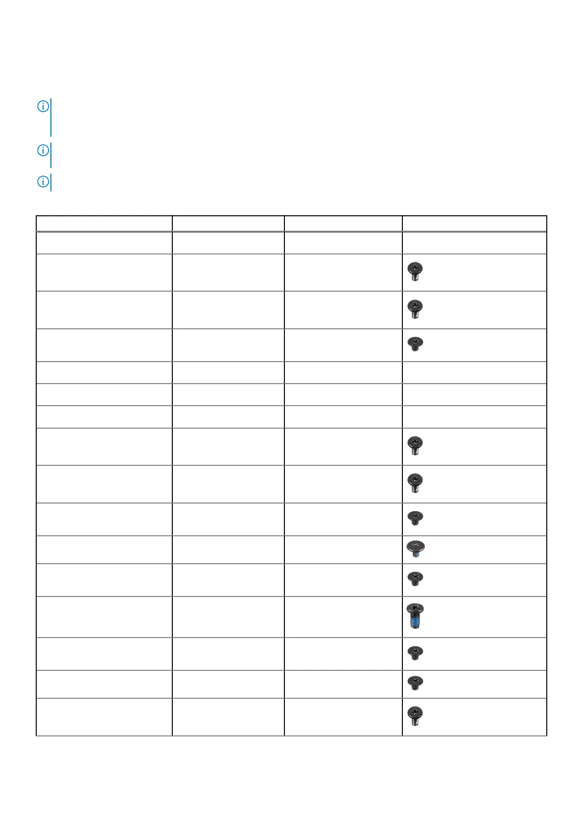 Component Screw type Quantity Screw image