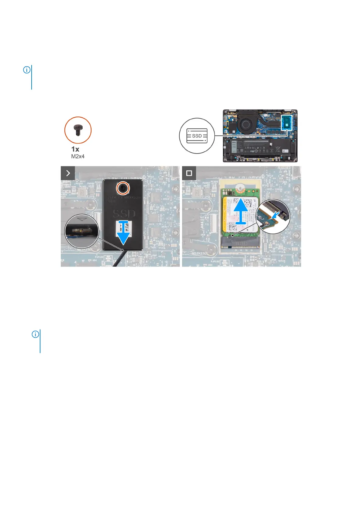 The following image indicates the location of the M.2 2230 SSD and provides a visual representation of the removal procedure.