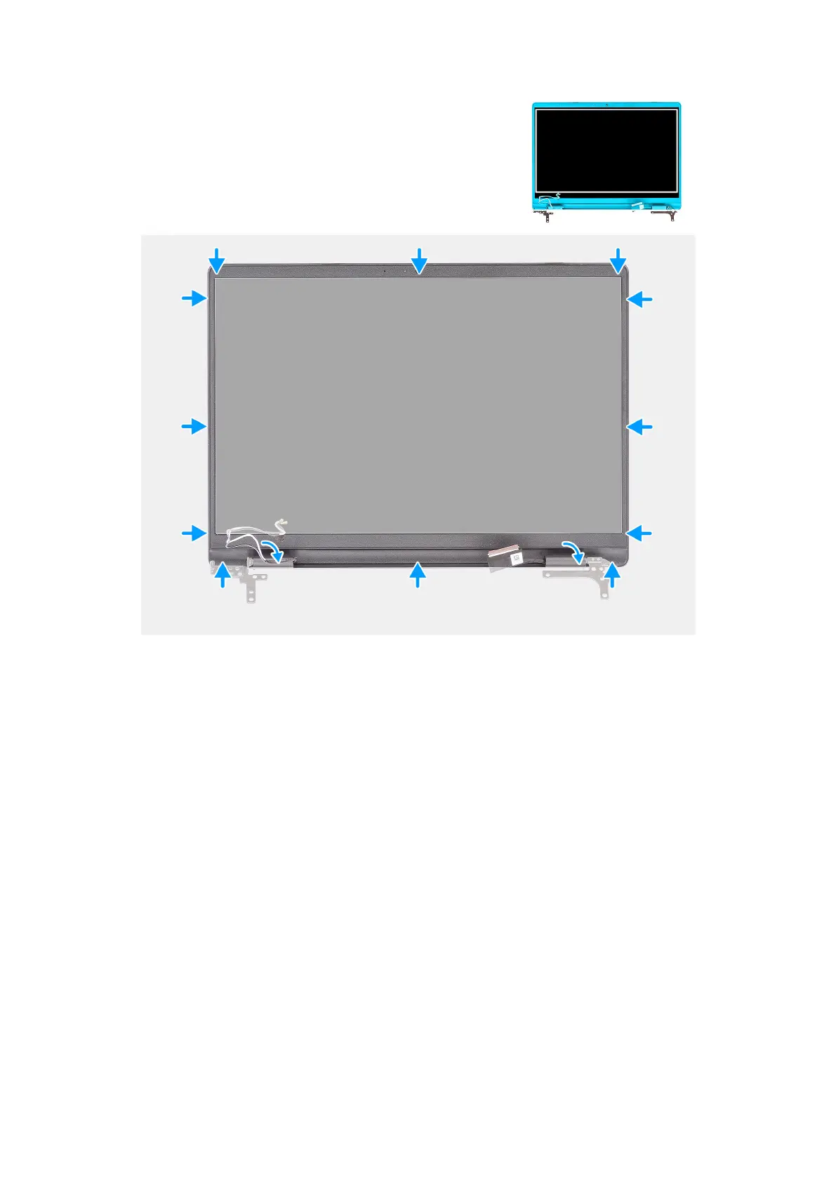 3. Starting from the top corner, press on the display bezel and work around the entire bezel until it clicks onto the display