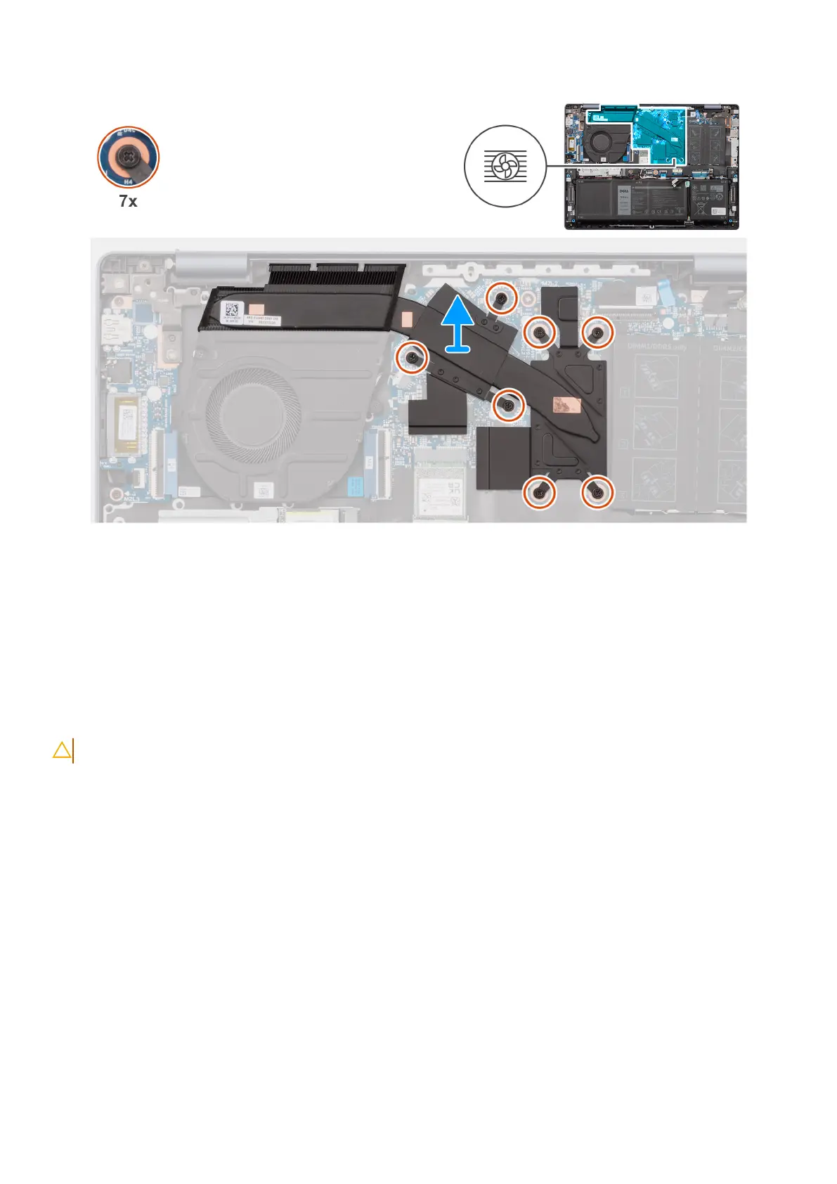 1. In reverse sequential order (7 > 6 > 5 > 4 > 3 > 2 > 1), loosen the seven captive screws that secure the heat sink to the