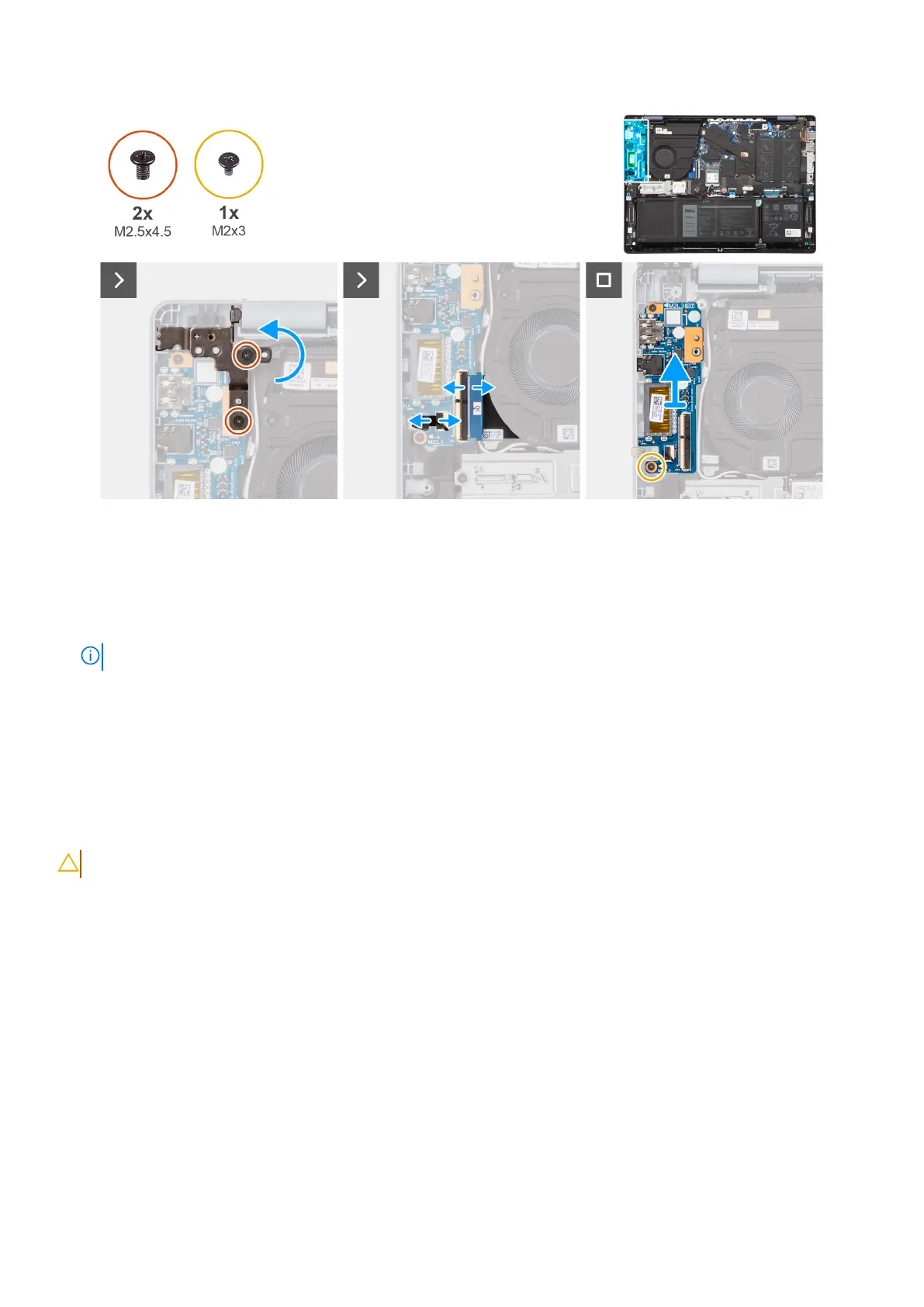 1. Remove the two screws (M2.5x4.5) that secure the left display hinge to the palm-rest and keyboard assembly.