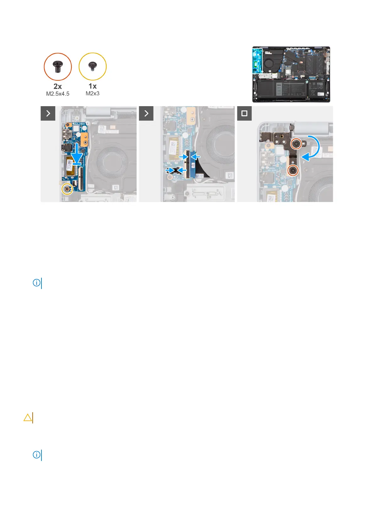7. Replace the two screws (M2.5x4.5) that secure the left display hinge to the palm-rest and keyboard assembly.