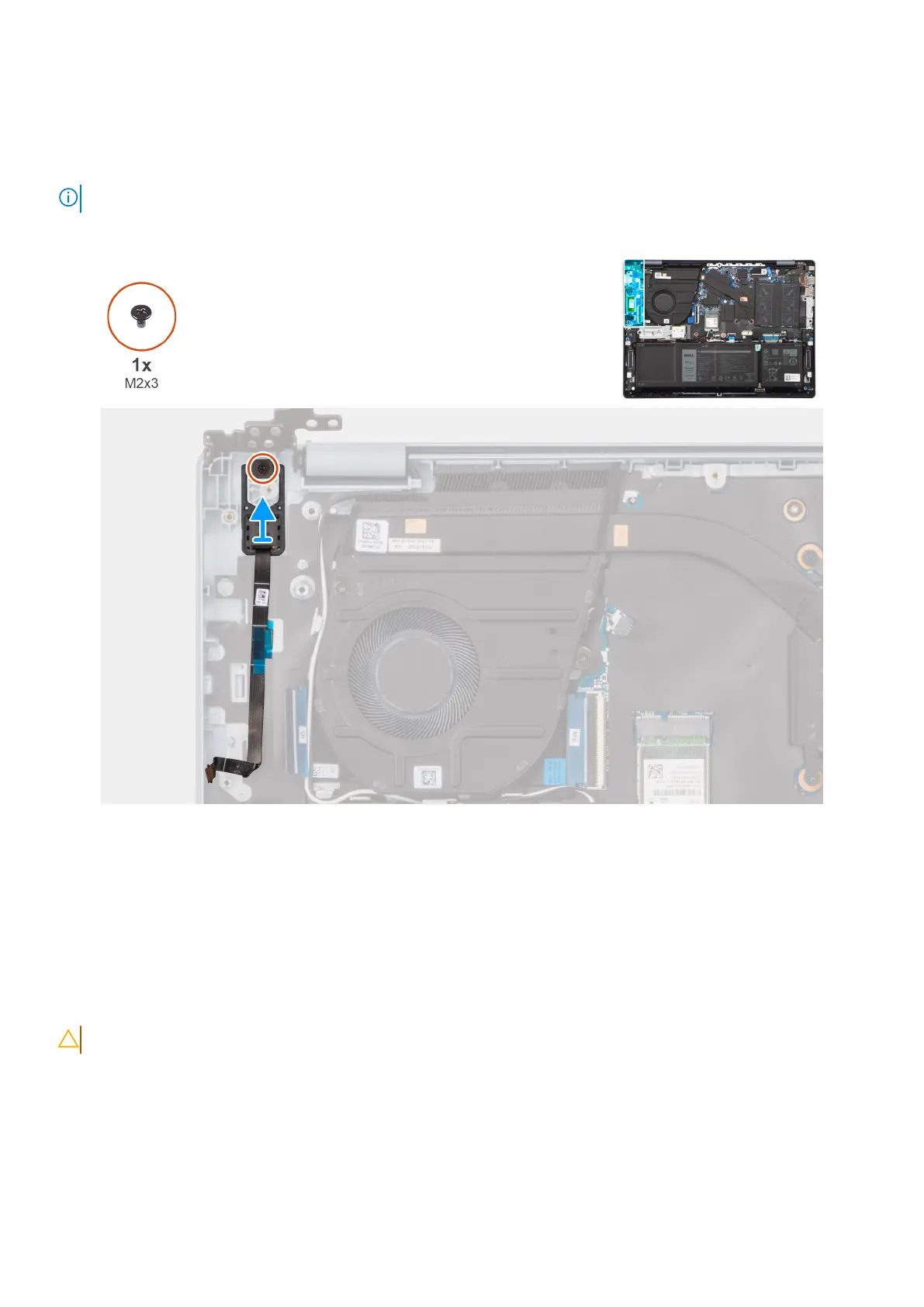 1. Remove the screw (M2x3) that secures the power-button to the palm-rest and keyboard assembly.