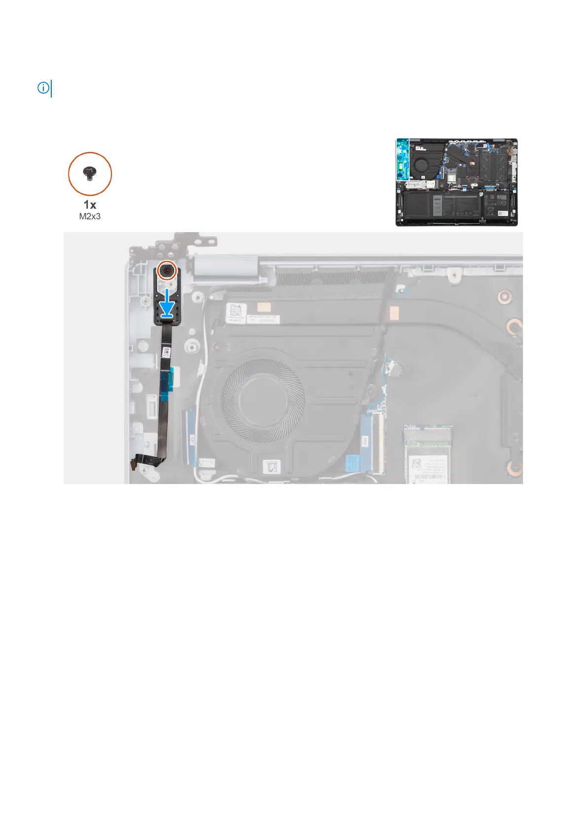 3. Replace the screw (M2x3) that secures the power-button to the palm-rest and keyboard assembly.