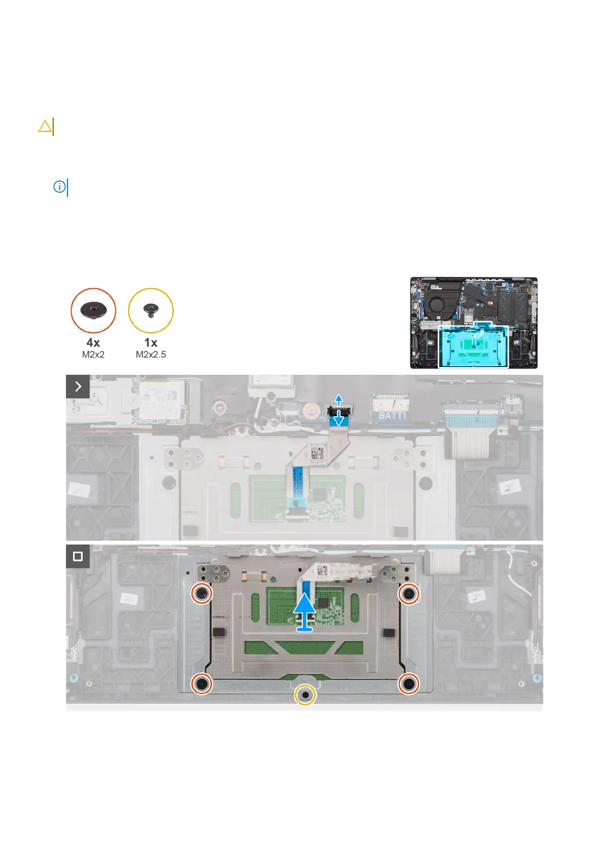 The following image indicates the location of the touchpad and provides a visual representation of the removal procedure.