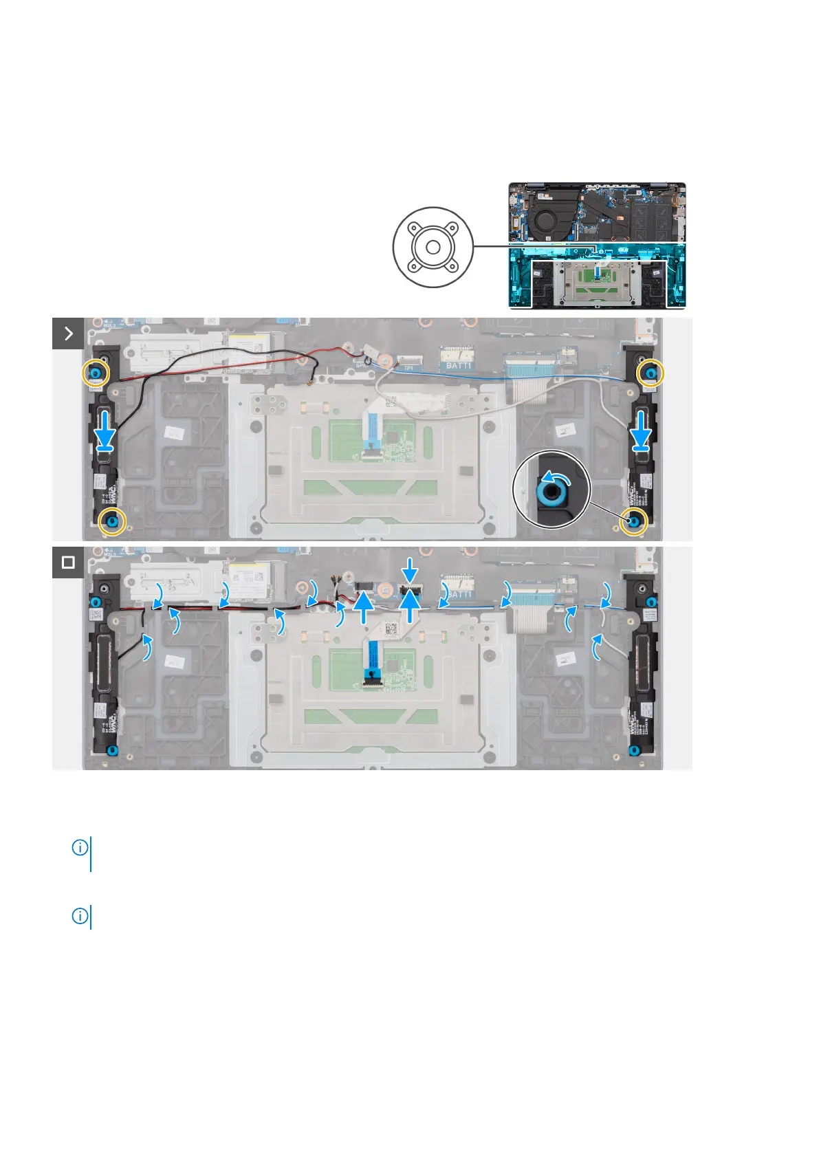 NOTE: Ensure the wires of the speakers and wireless antennas are placed in their routing guides accordingly.