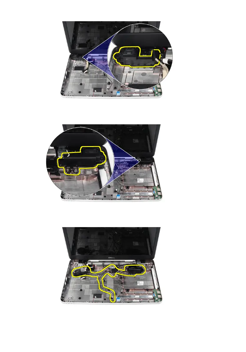 15. Remove the speaker assembly and the speaker cable from the computer.