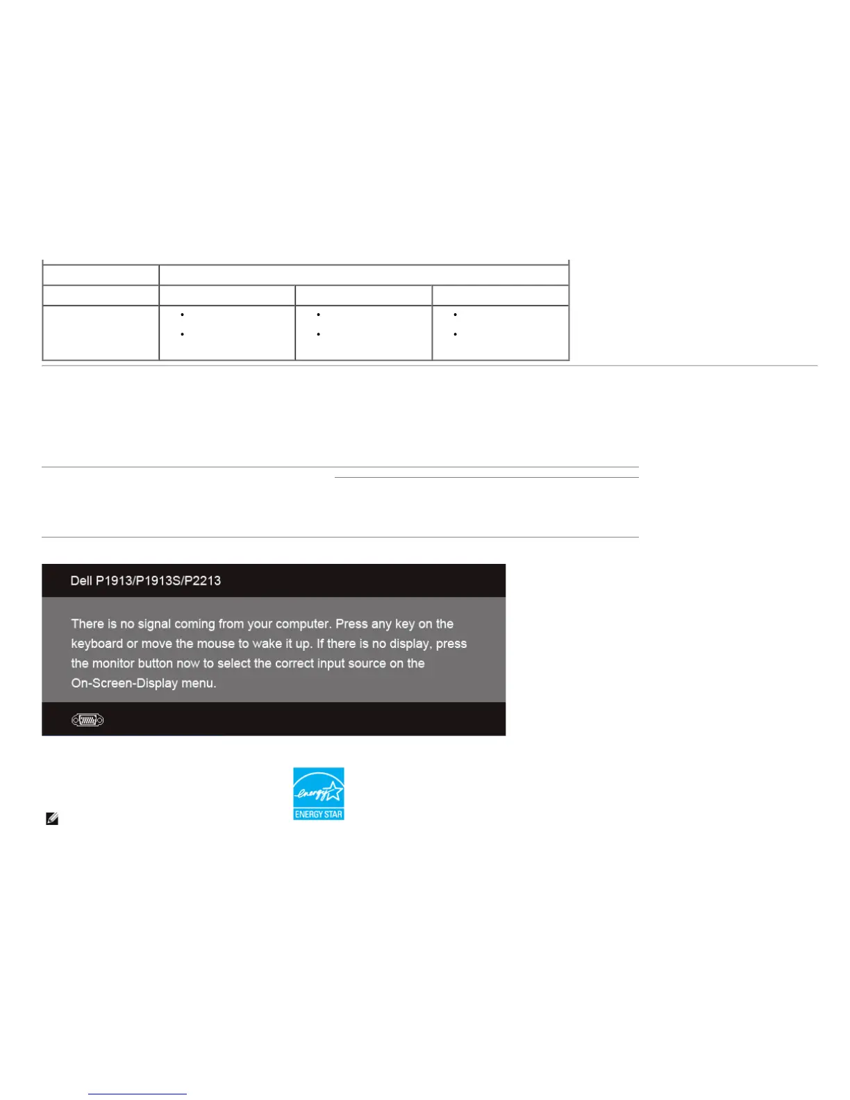 as Power Save Mode*. If the computer detects input from the keyboard, mouse, or other input devices, the monitor automatically resumes functioning. The following table shows