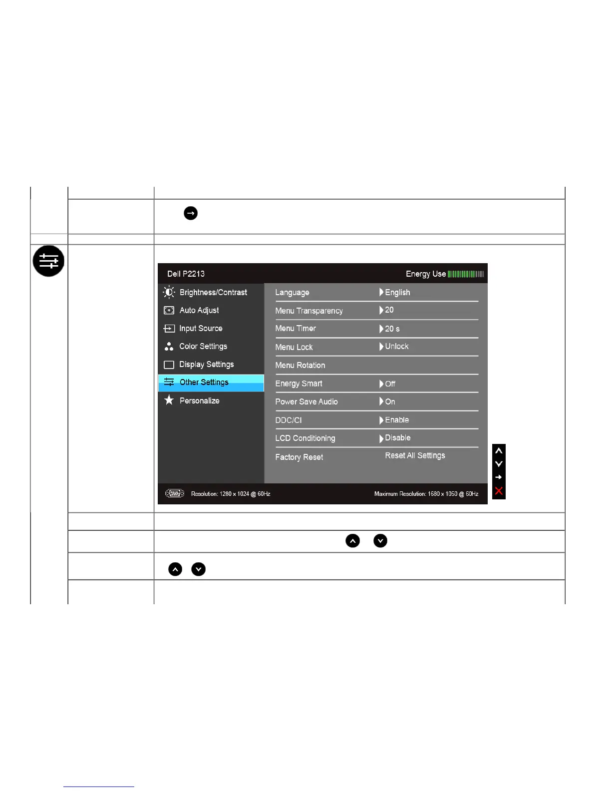 Other Settings Select this option to adjust the settings of the OSD, such as, the languages of the OSD, the amount of time the menu remains on screen, and so