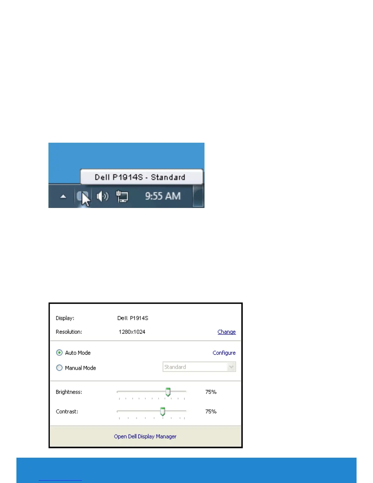Clicking Dell Display Manager’s notification tray icon opens the Quick